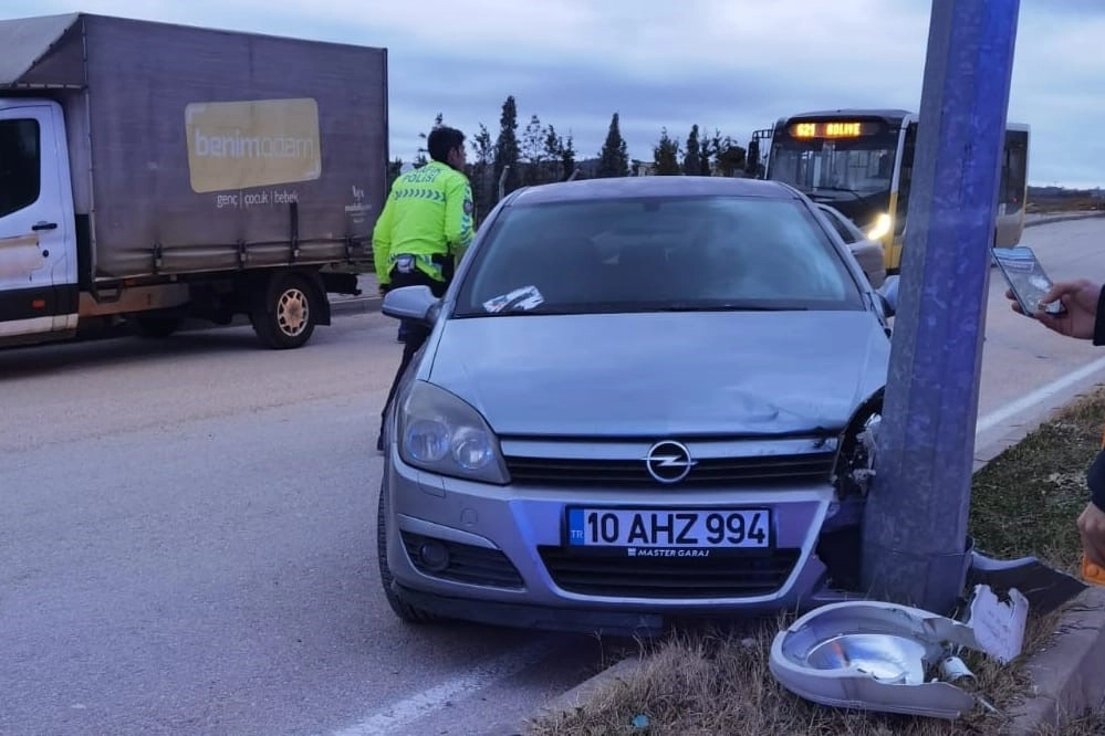 Kaza, saat 18.00 sıralarında Baykoca Mahallesi Yeni İnegöl Caddesi üzerinde meydana geldi. Emran D. (29) idaresindeki 10 AHZ 994 plakalı otomobil sürücüsünün kontrolünden çıkarak yoldan karşıya geçmeye çalışan 2 yayaya ardından aydınlatma direğine çarptı.