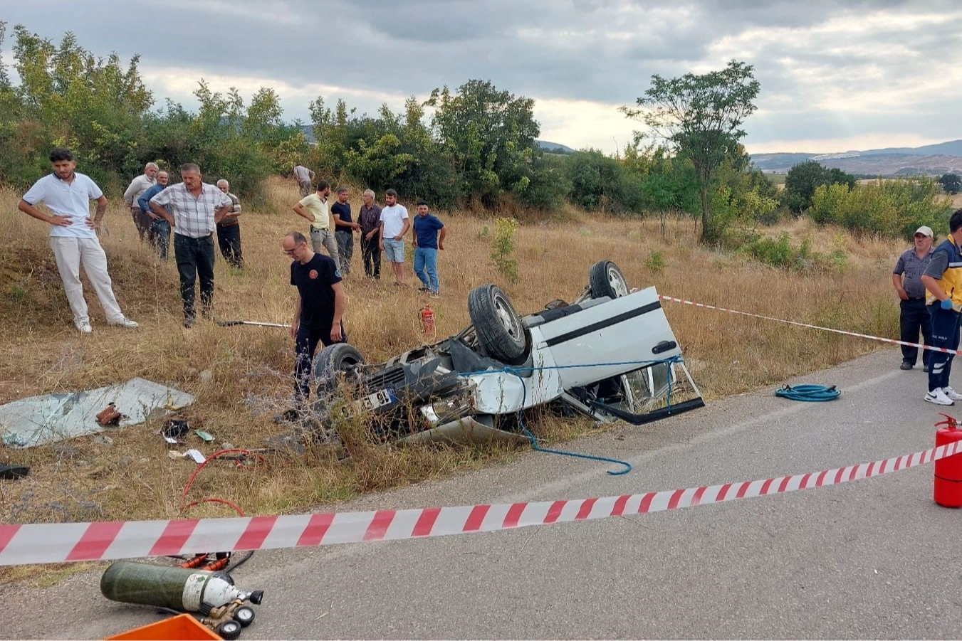 Kadın sürücü hayatını kaybederken, yanındaki sevgilisi yaralandı. Kaza yerine gelen kadının ailesi, sevgilisine saldırdı. Kaza, saat 18.30 sıralarında İnegöl'e bağlı kırsal Sungurpaşa Mahallesi'nde meydana geldi. Havva G. (38) idaresindeki 16 EF 682 plakalı otomobil, sürücünün direksiyon hakimiyetini kaybetmesi sonucu yol kenarındaki levhalara çarpıp takla atarak uçtuğu tarlada ters durdu.