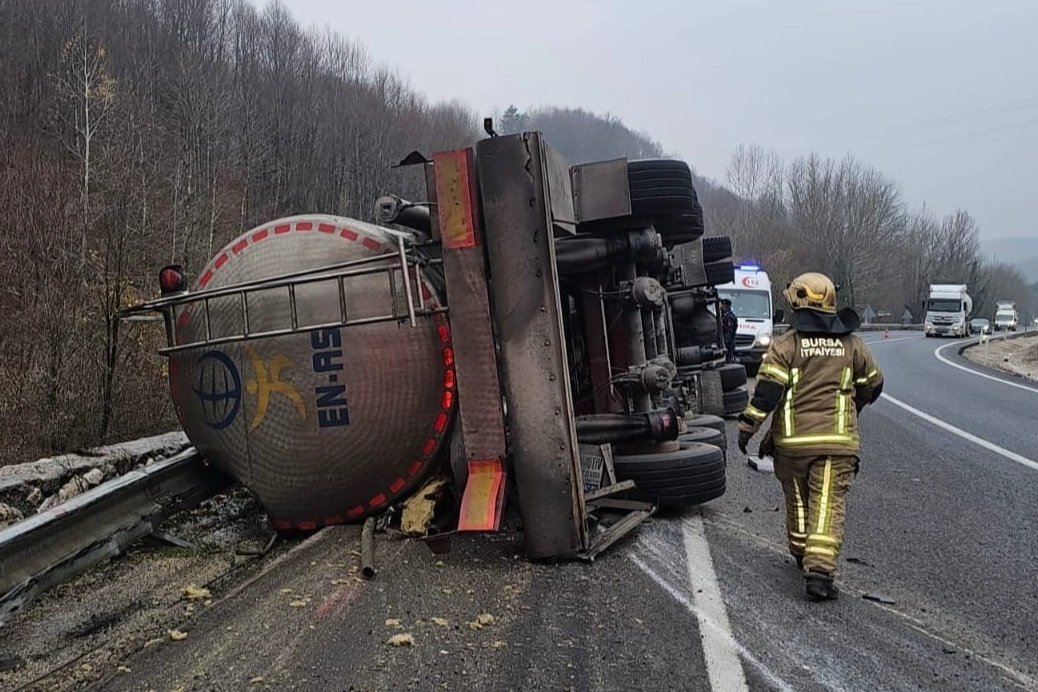 Kaza, saat 17.00 sıralarında Bursa-Ankara karayolu üzeri Mezit boğazında meydana geldi. Eskişehir istikametinden İnegöl istikametine seyir halinde olan Kıyasettin Kara (56) yönetimindeki 41 AVZ 472 plakalı, mono etilen glikol asit taşıyan tanker, sürücüsünün kontrolünden çıktı. Karşı yöne geçen tanker bariyerlere çarpıp devrildi. Araçta sıkışan sürücü feci şekilde can verdi.