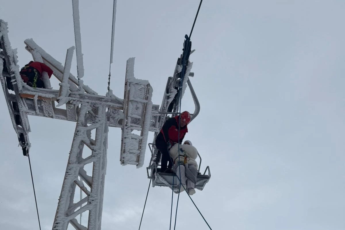 Dondurucu soğuğa rağmen vites kutusundaki arıza nedeniyle yerden metrelerce yüksekte asılı kalan 40 tatilci için zamanla yarış başlarken; JAK ve AFAD ekiplerinin titizlikle yürüttüğü tahliye operasyonu, bölgedeki diğer turistler tarafından da endişeli gözlerle takip ediliyor.