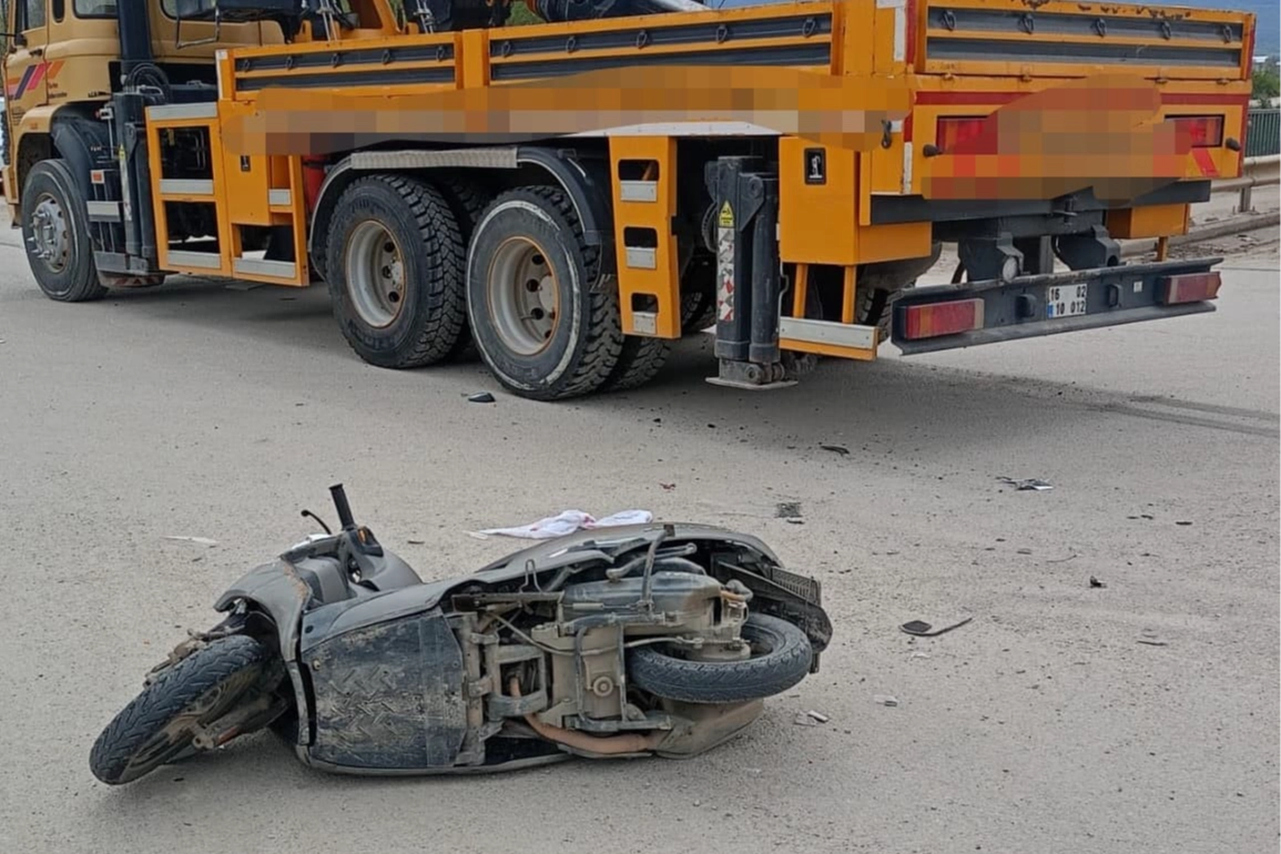 Kaza Cumhuriyet mahallesi Mareşal Fevzi Çakmak Caddesi üzerinde meydana geldi. Sürücü Sercan D.(25) yönetimindeki vinç ile sürücü Mehmet T. (34) yönetimindeki 16 BEK plakalı motosiklet çarpıştı. Çarpışmanın etkisiyle devrilen motosikletten düşen sürücü yaralandı. Yaralı kaza yerine sevk edilen Ambulansla İnegöl Devlet Hastanesine kaldırıldı. Polis kazayla ilgili soruşturma başlattı.