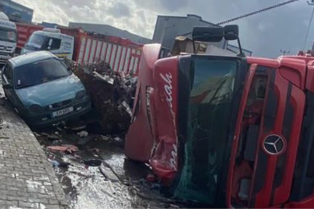 Kaza, Osmaniye Tüysüz Beldesi Organize Sanayi Bölgesinde meydana geldi. Sürücüsü ve plakası öğrenilmeyen hurda yüklü kamyon döner kavşaktan dönüş yaptığı sırada sürücüsün direksiyon hakimiyetini kaybetmesi sonucu yol kenarında bulunan park halindeki araçların üzerine devrildi. Yaralının olmadığı kazada 3 araçta maddi hasar meydana geldi. Kaza anı bir iş yerinin güvenlik kamerasına yansıdı.