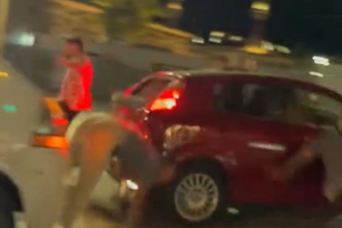 Alkollü şahıs ve yanındaki 2 arkadaşı aracın önünü kesip kavga edince ağabeyinin darp edildiğini gören kardeşi, aracıyla geri manevra yapıp 3 kişiye çarptı. O anlar kameraya yansırken, kavgayı polis güçlükle ayırdı.