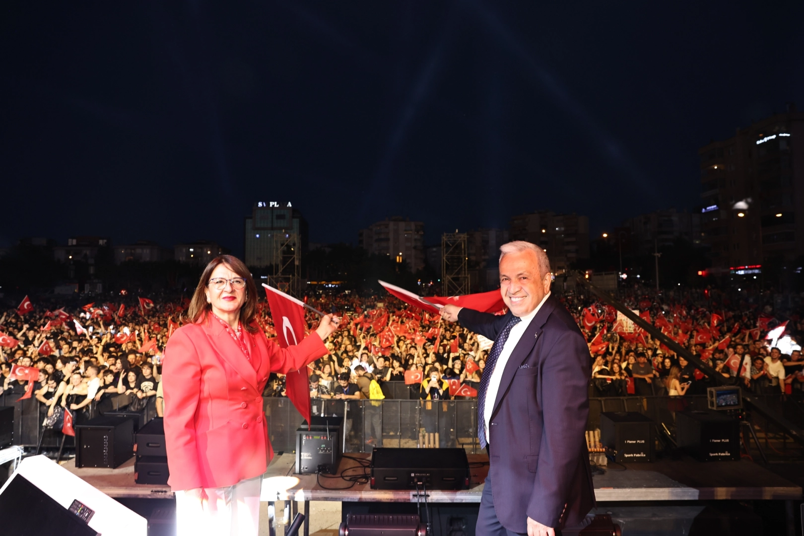 Konser sonunda sahneye çıkarak teşekkür eden Nilüfer Belediye Başkanı Şadi Özdemir, günün anısına Hayko Cepkin’e hediye verdi.
