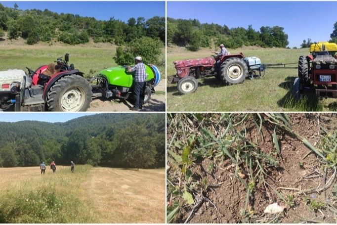 Bursa'da çekirgelerin tarımsal alana ulaşmadan tarım dışı garsiyat (yumurta bırakma) alanlarında ilaçlı mücadele başladı. Bursa’nın İznik, Keles, Osmangazi ve Yenişehir İlçesinde bulunan garsiyat alanlarında '2025 Bitki Sağlığı Uygulama Programı' çerçevesinde çekirge mücadelesi yapılıyor. İznik İlçesi Kırıntı ve Elmalı Mahallesi ile Keles İlçesi Sorgun Mahallesindeki garsiyat alanlarında çekirge popülasyonunda riskli yoğunluk tespit edilerek ilaçlama kararı alındı. Bursa İl Tarım ve Orman Müdürlüğü personeli koordinasyonunda mahalle muhtarlıklarınca toplam 775 dekar alanda gerçekleşen kimyasal mücadelede, Tarım ve Orman Bakanlığınca ruhsatlı Cypermethrin 250 EC etkili maddeli Bitki Koruma Ürünü kullanılarak yapıldı. Osmangazi ve Yenişehir İlçesindeki toplam 475 dekar garsiyat alanında ise herhangi risk teşkil edecek bir durumla karşılaşılmadı ve sürvey çalışmalarına devam ediliyor.