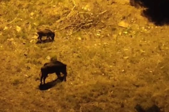 Edinilen bilgiye göre, aç kalan domuz sürüsü havanın kararmasına yakın saatlerde yemek aramak için şehir merkezine indi. Bir süre çöp konteyneri ve ağaçlık alanda yemek arayan domuzlar mahallelinin şaşkın bakışları arasında geldikleri ormanlık alana girerek gözden kayboldu.