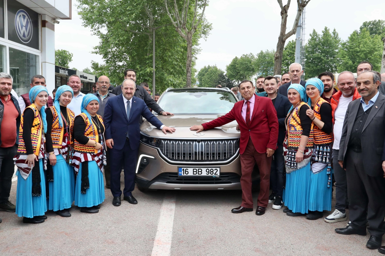 Yerli ve milli Togg ile galericiler sitesine gelen Bakan, horon ile karşılandı.
