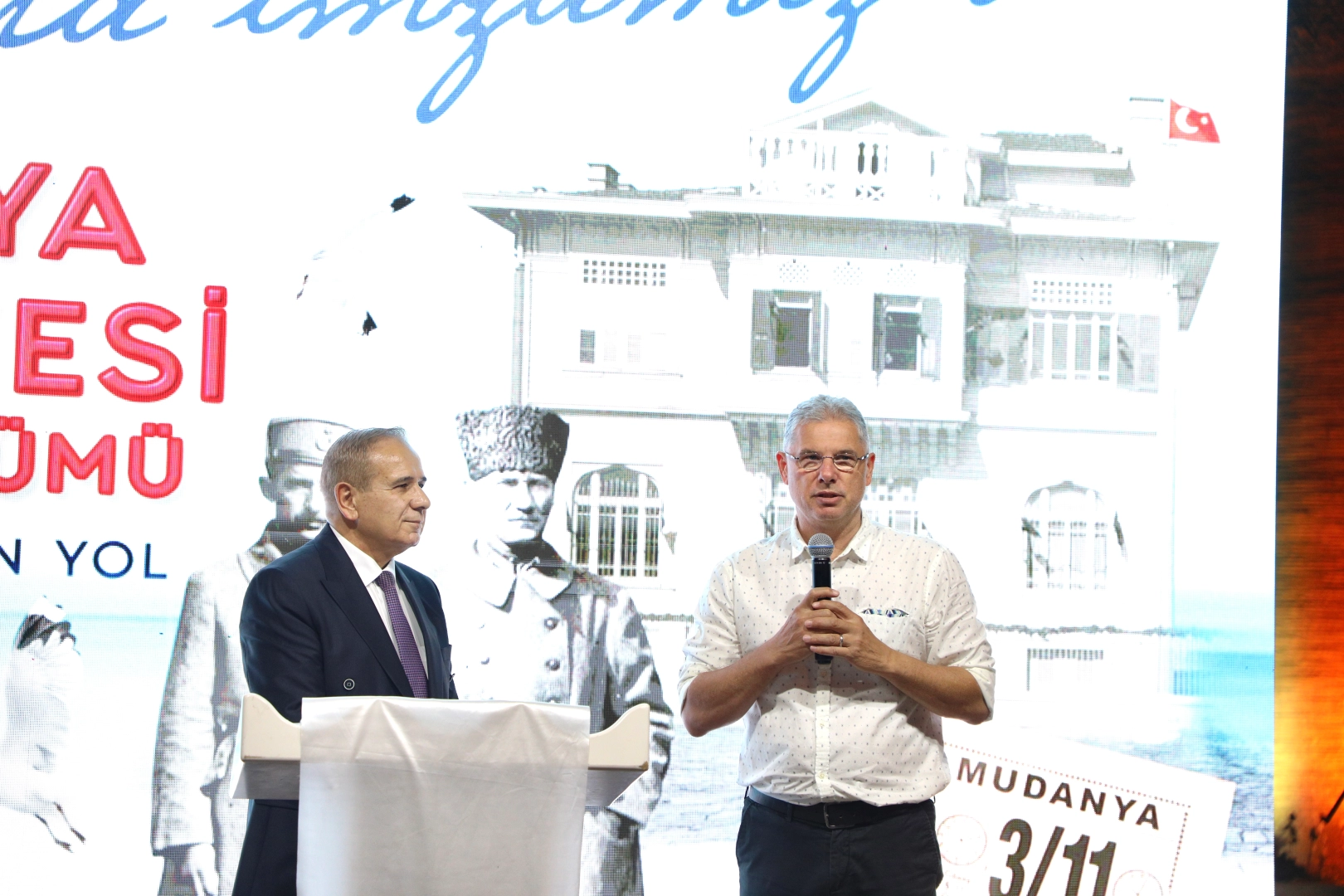 Prof. Dr. Mithat Baydur’a konuşmasının ardından barış ve dostluğun simgesi olarak zeytin fidanı armağan eden Mudanya Belediye Başkanı Deniz Dalgıç, “Mudanya Mütarekesi Türkiye Cumhuriyeti açısından çok önemli bir dönüm noktasıdır. Bizler de bu önemi daha çok duyurmaya ve anlatmaya çalışıyoruz. Türkiye Cumhuriyet’i için ‘Mütareke’den Önce, Mütareke’den Sonra’ sözünü kullanıyoruz. Mekanların ruhları vardır. Mütareke Meydanı’nda, Mütareke Evi’nin önünde sürekli bu ruhla harmanlanıyoruz” diye konuştu.