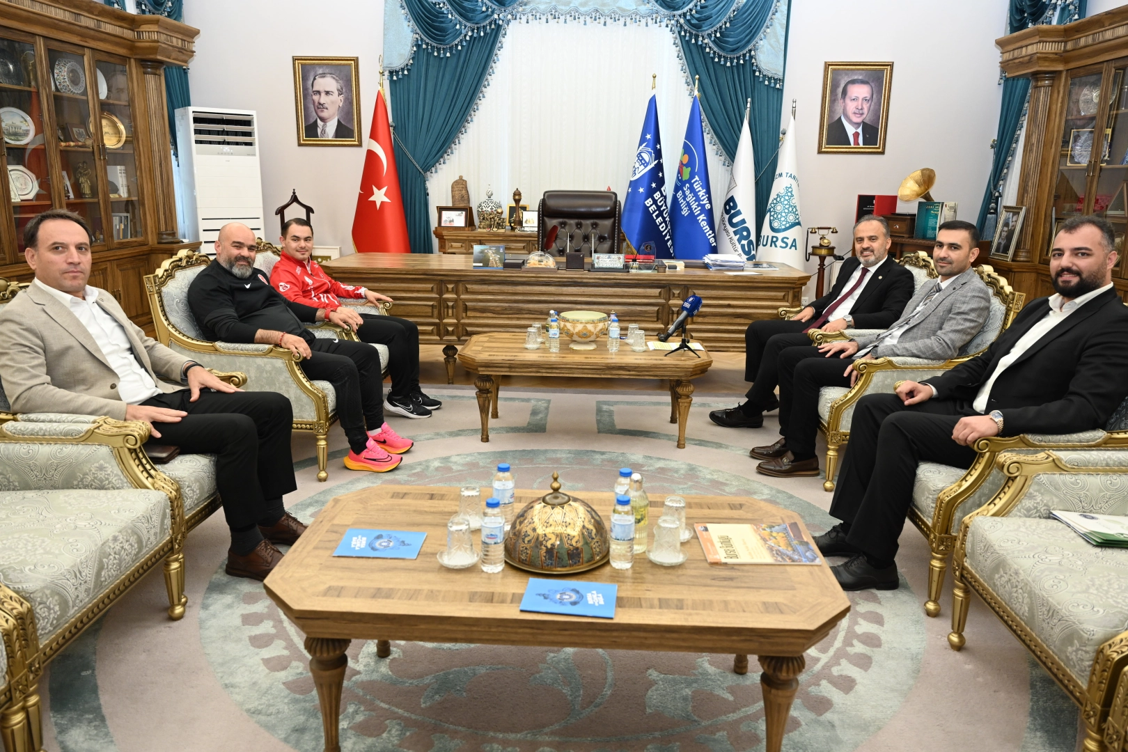 İtalya’da düzenlenen Down Sendromlular Avrupa Şampiyonası’nın final maçında Portekiz’i 2-1 yenerek şampiyonluğa ulaşan Down Sendromlu Özel Futsal Milli Takımı’nın Bursalı sporcusu Birkan Dikici ve Bursalı kaleci antrenörü İlyas Sarı, Büyükşehir Belediye Başkanı Alinur Aktaş’ı ziyaret etti. Tarihi Belediye Binası’nda gerçekleşen ziyarette, Gençlik ve Spor Hizmetleri Dairesi Başkanı Yunus Kaldırım, Sosyal Hizmetler Dairesi Başkanı Hüseyin Buran ve Tarım Peyzaj AŞ Genel Müdürü Semih Polat da hazır bulundu.