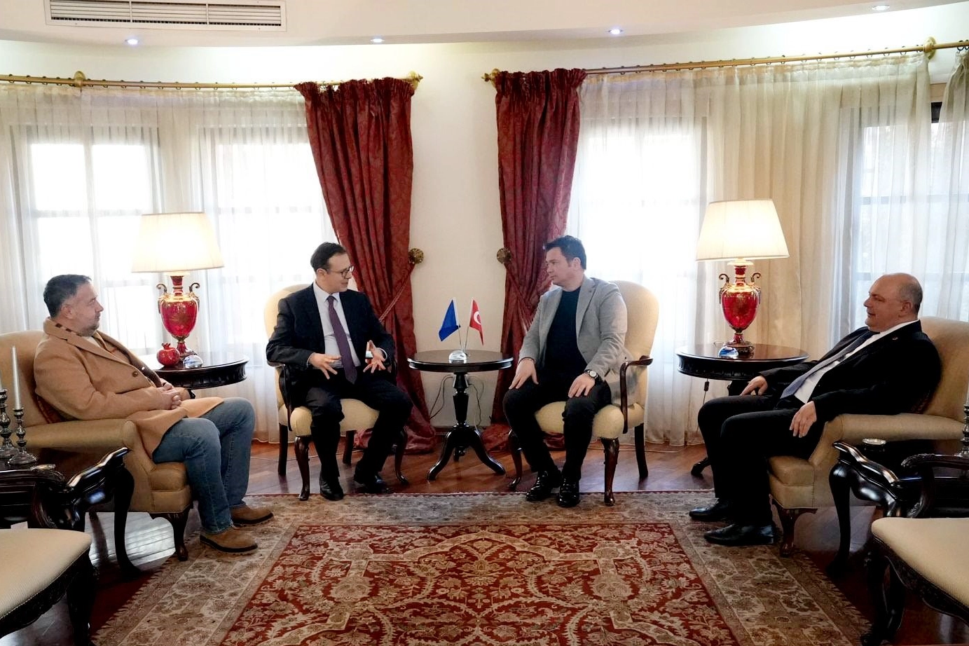 Türkiye Cumhuriyeti Priştine Büyükelçisi Tunç Angılı’yı ve Türkiye Cumhuriyeti Prizren Başkonsolosu Celal Doğan’ı ziyaret eden Başkan Aydın, bölgede işbirliği içerisinde gerçekleştirilebilecek projelere ilişkin fikir alışverişinde bulundu.