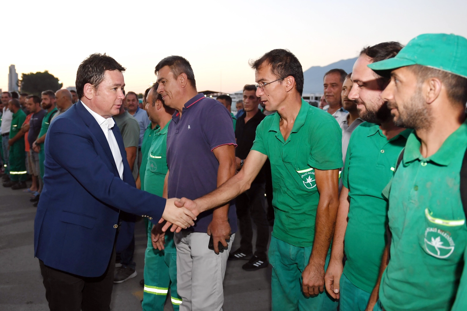 Yeni zam müjdesini duyunca büyük bir coşku yaşayan belediye işçileri, emeklerinin ve alın terinin karşılığını maaş bordrosuna yansıtmasından dolayı Başkan Erkan Aydın’a teşekkür etti. Başkan Aydın, sıcak sohbetin ardından günün ilk ışıklarıyla birlikte temizlik personelini görev yerlerine uğurladı.