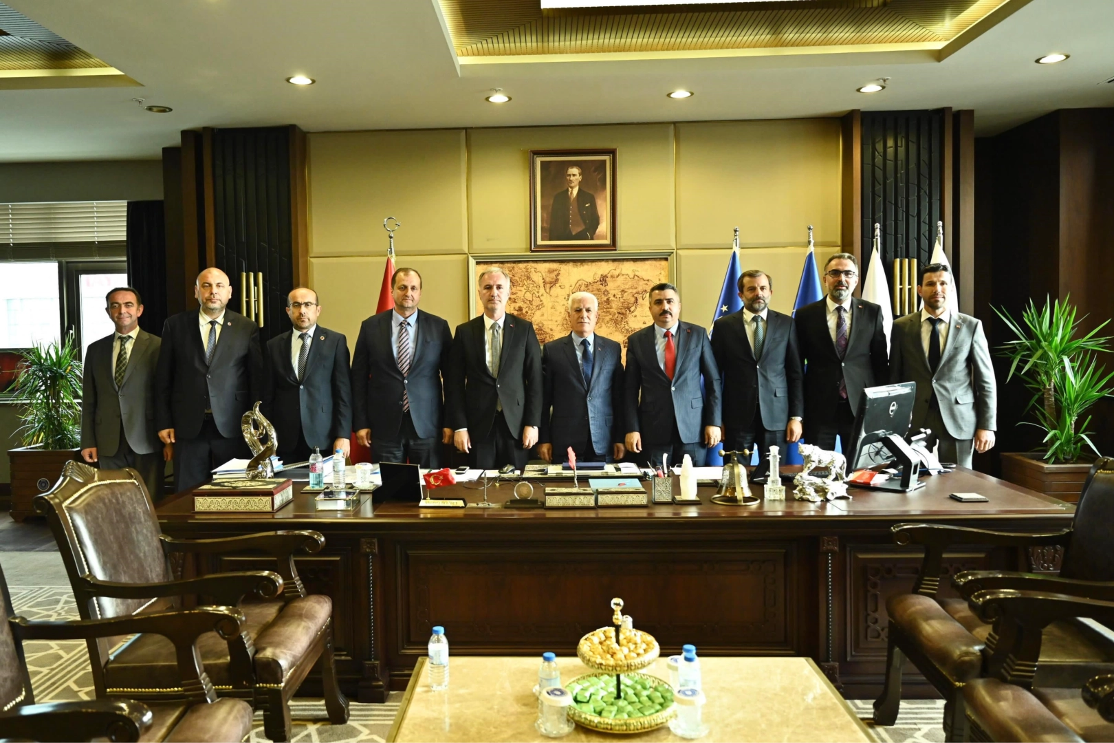 Bursa Büyükşehir Belediye Başkanı Mustafa Bozbey, Yeni Belediye Binası’nda AK Partili Yıldırım Belediye Başkanı Oktay Yılmaz, İnegöl Belediye Başkanı Alper Taban, Gürsu Belediye Başkanı Mustafa Işık, İznik Belediye Başkanı Mehmet Kağan Usta, Orhangazi Belediye Başkanı Bekir Aydın, Kestel Belediye Başkanı Ferhat Erol, Orhaneli Belediye Başkanı Ali Osman Tayır, Büyükorhan Belediye Başkanı Kamil Turhan ve Keles Belediye Başkanı Ali Doğru’yu ağırladı. 31 Mart Mahalli İdareler Seçimlerinde yeniden ve ilk kez göreve seçilen belediye başkanlarının ziyaretlerinden büyük memnuniyet duyduğunu dile getiren Büyükşehir Belediye Başkanı Mustafa Bozbey, yeni dönemde 17 ilçe belediye başkanıyla birlikte uyum içerisinde çalışarak Bursalılara hizmet götüreceklerini söyledi. Şehri geleceğe taşıyacak projeleri hep birlikte artık daha çok çalışarak hayata geçireceklerini belirten Başkan Bozbey, “Bursalılar bize güvendi ve bu makamlara bizi değer gördü. Önümüzdeki dönemde uyum içerisinde bu şehir için daha çok çalışacağız. Bursa’nın ihtiyaçlarını çok iyi biliyoruz. Bu şehirde yaşayan herkesin taleplerini biliyoruz. Bir dakikamızı bile boşa harcamadan yeni bir Bursa için yol alacağız. Bursa’ya bahar geldi. Bursa’da yeni bir dönem başladı” dedi.