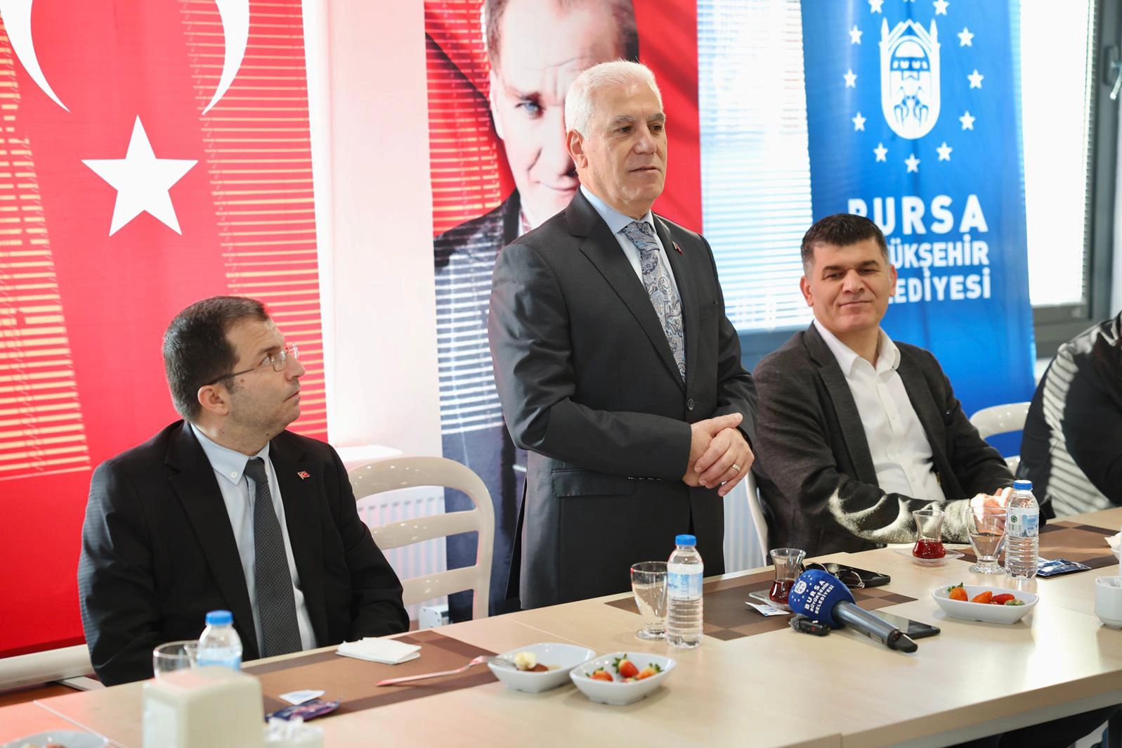 Bursa Büyükşehir Belediye Başkanı Mustafa Bozbey, kentin dört bir yanında sahada çalışan Ulaşım Dairesi Başkanlığı personeliyle bir araya gelerek, Bursa’nın yollarında yalnızca asfalt değil; emek, sorumluluk ve güven inşa ettiklerini söyledi. Daha güvenli, daha konforlu ve herkes için ulaşılabilir bir Bursa hedefiyle çalıştıklarını vurgulayan Bozbey, ulaşım yatırımlarının artarak süreceğinin altını çizdi. Bursa Büyükşehir Belediye Başkanı Mustafa Bozbey, daha yaşanabilir ve ulaşılabilir bir Bursa hedefiyle 17 ilçede yoğun emek harcayan Ulaşım Dairesi Başkanlığı personeliyle kahvaltı programında bir araya geldi.