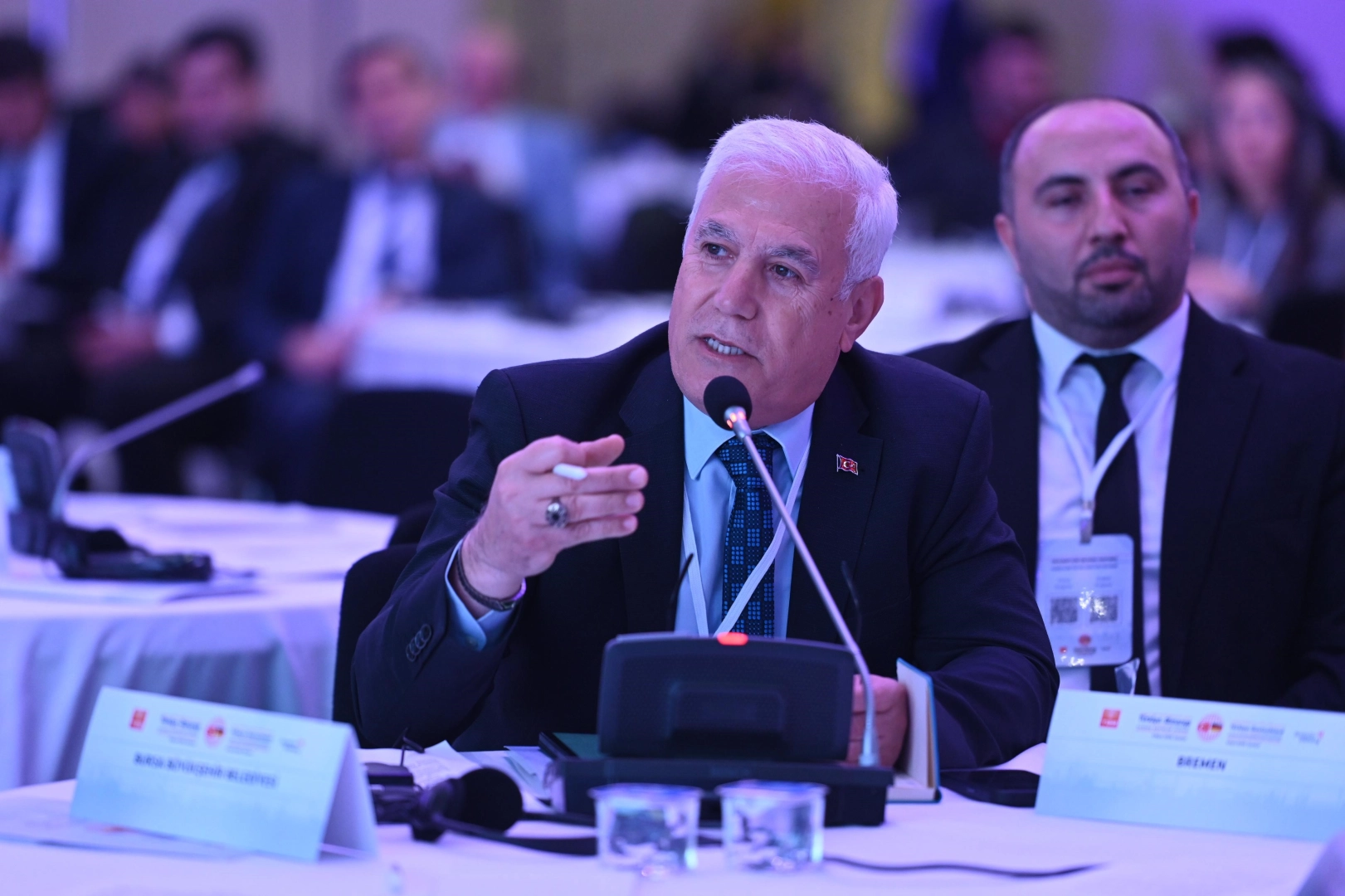 Bu anlamlı buluşmaya öncülük eden ancak tutukluluğu nedeniyle katılamayan İstanbul Büyükşehir Belediye Başkanı Ekrem İmamoğlu’na desteğimizi tekrar dile getiriyoruz. Haksız tutukluluğunun sona ermesi gerektiğini vurguluyoruz. Bu zirveyi düzenleyen Türkiye Belediyeler Birliği’ne ve Alman Belediyeler Birliği’ne teşekkür ediyorum” dedi.