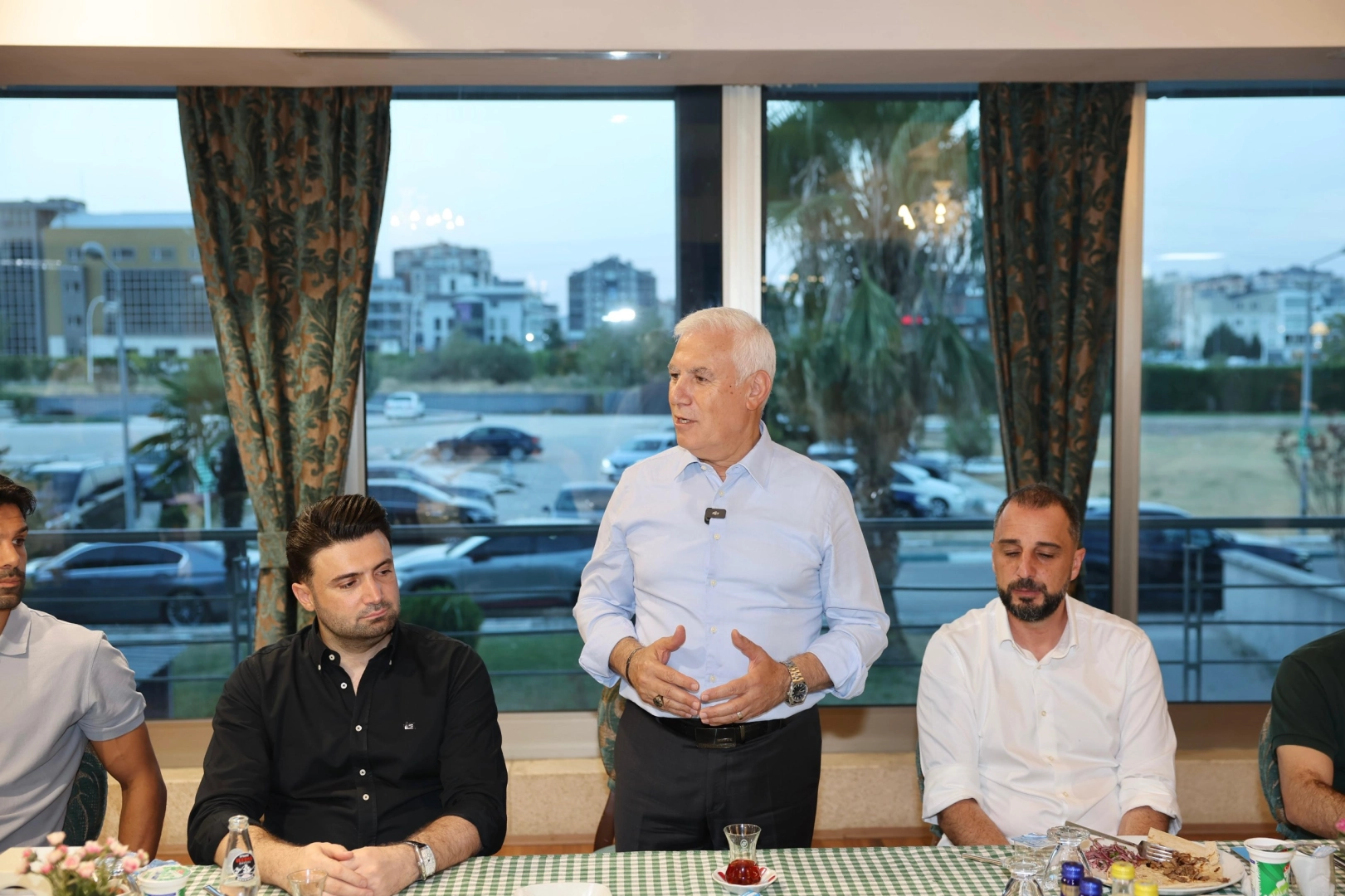 Bursa Büyükşehir Belediye Başkanı Mustafa Bozbey, yeni sezonun ilk karşılaşması öncesinde Özlüce İbrahim Yazıcı Tesisleri’nde Bursaspor Başkanı Enes Çelik ve futbolcularla moral yemeğinde buluştu. Başkan Bozbey, samimi bir ortamda gerçekleşen buluşmada Başkan Enes Çelik ve futbolcularla takımın hedefleri üzerine değerlendirmelerde bulundu. Ayrıca Başkan Bozbey, kulübün finansal sürdürülebilirliğini güçlendirme hedefiyle Özlüce İbrahim Yazıcı Spor Tesisleri’nde hayata geçirilmesi planlanan TEMA 16 Projesi’nin son durumu hakkında da kulüp yöneticilerinden bilgi aldı.