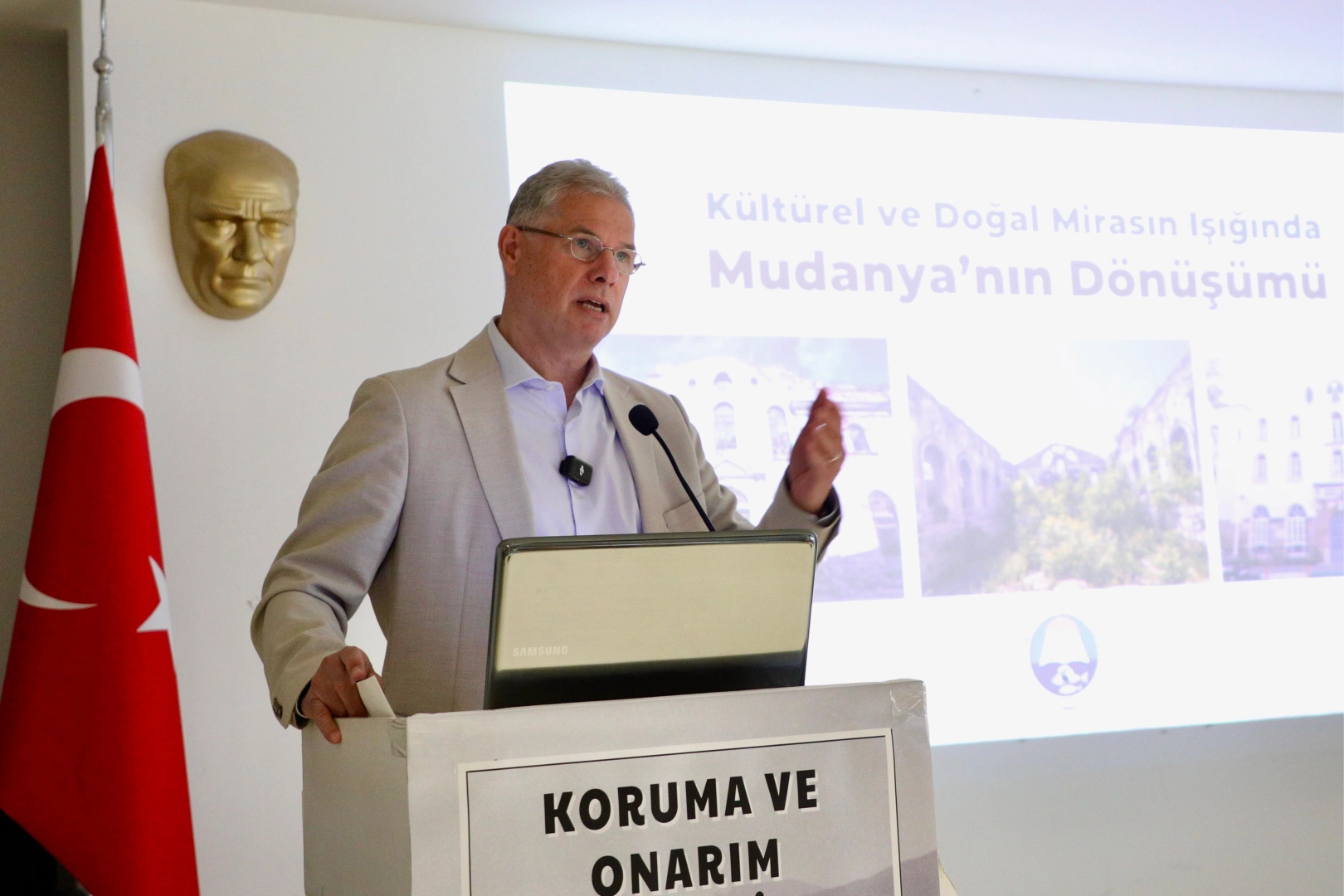 Mimarlar Odası Bursa Şubesi Yönetim Kurulu Başkanı Şirin Rodoplu Şimşek ise kültürel mirası korumanın yalnız kamunun gayretleriyle sürdürülemeyeceğini, meslek odalarına ve STK'lara bu konuda da önemli görevler düştüğünü ifade etti. Etkinliğin tüm katılımcıları için ilham verici ve yol gösterici olmasını diledi.