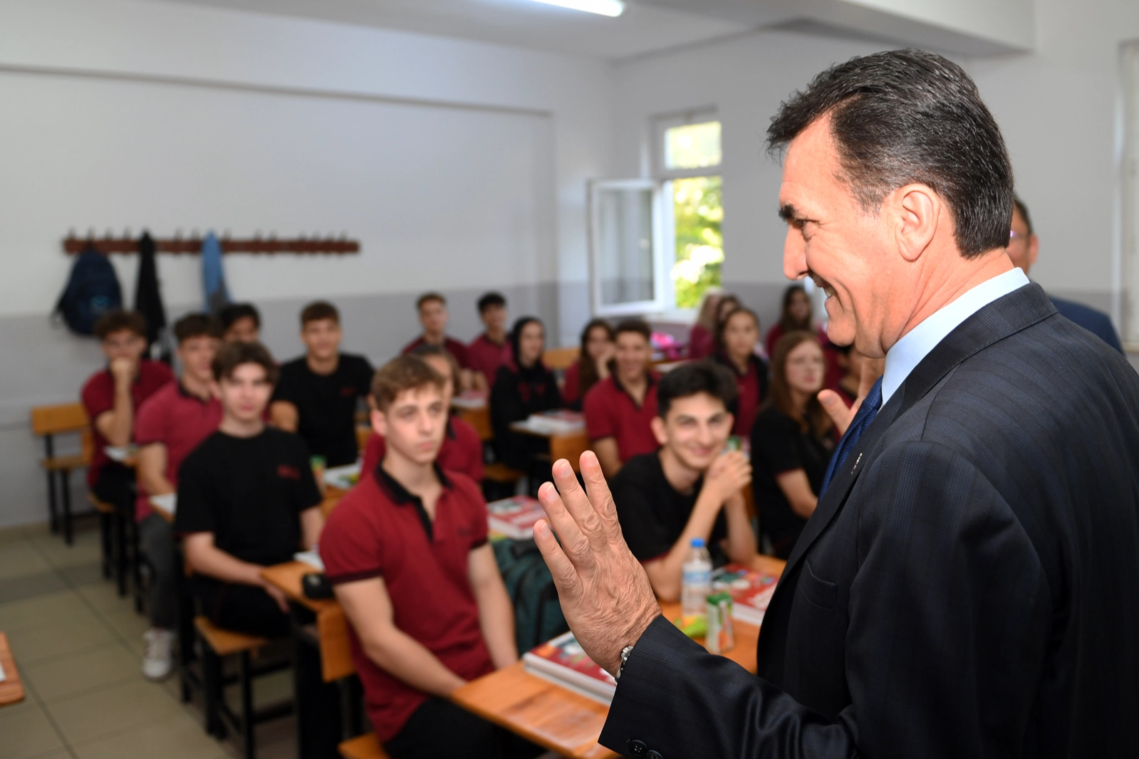 Osmangazi İlçe Milliği Eğitim Müdürü Gürhan Çokgezer ile birlikte sınıfları gezen Başkan Dündar, sohbet ettiği öğrencilere üniversiteye hazırlık yardım kitap seti hediye etti.