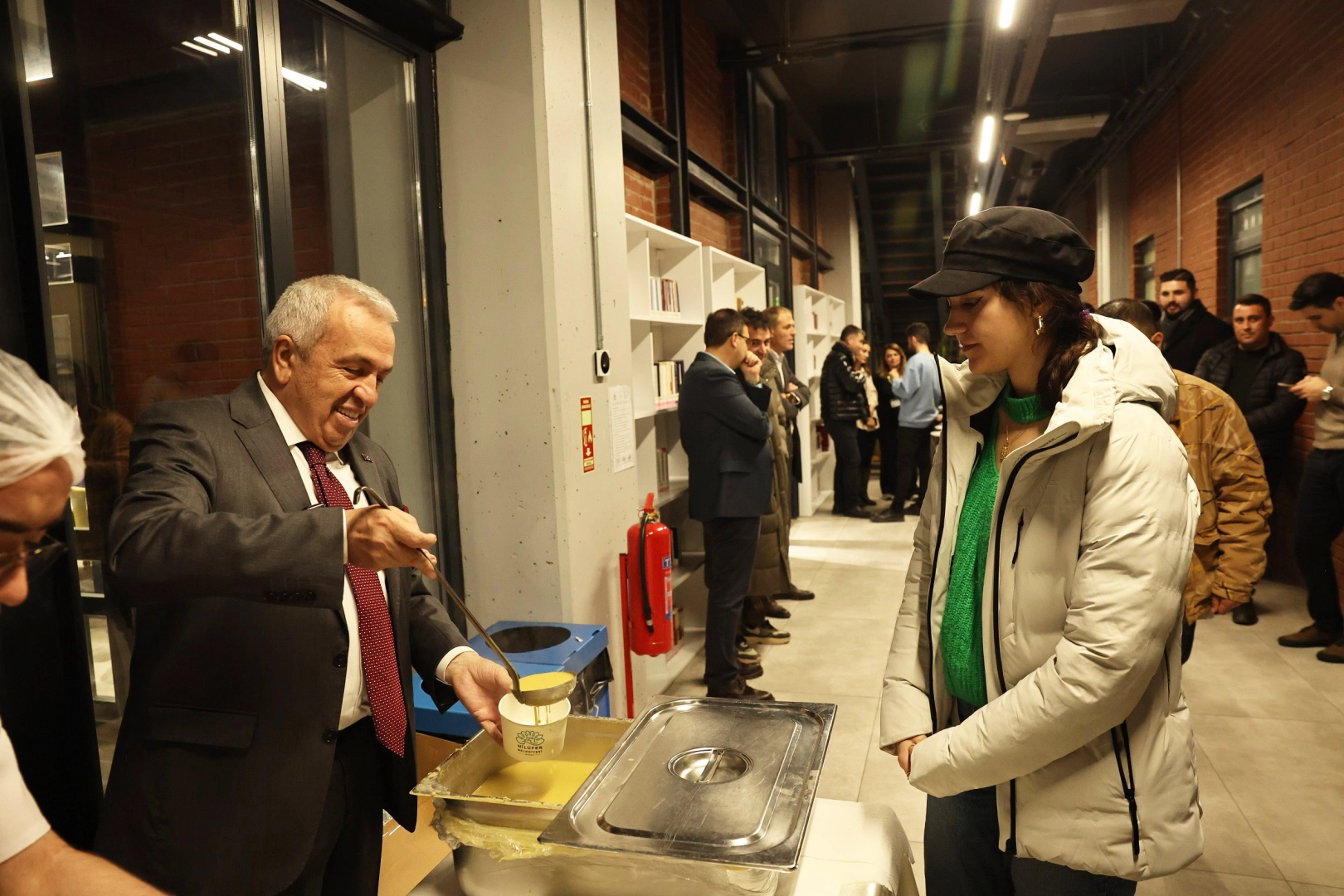 Nilüfer Belediyesi’nin üniversite öğrencilerine yönelik, ulaşım, barınma, çorba ikramı, ikinci el giysi, ikinci el ev eşyası gibi destekleri hakkında bilgi veren Başkan Şadi Özdemir, daha sonra da öğrencilere çorba ikram etti.