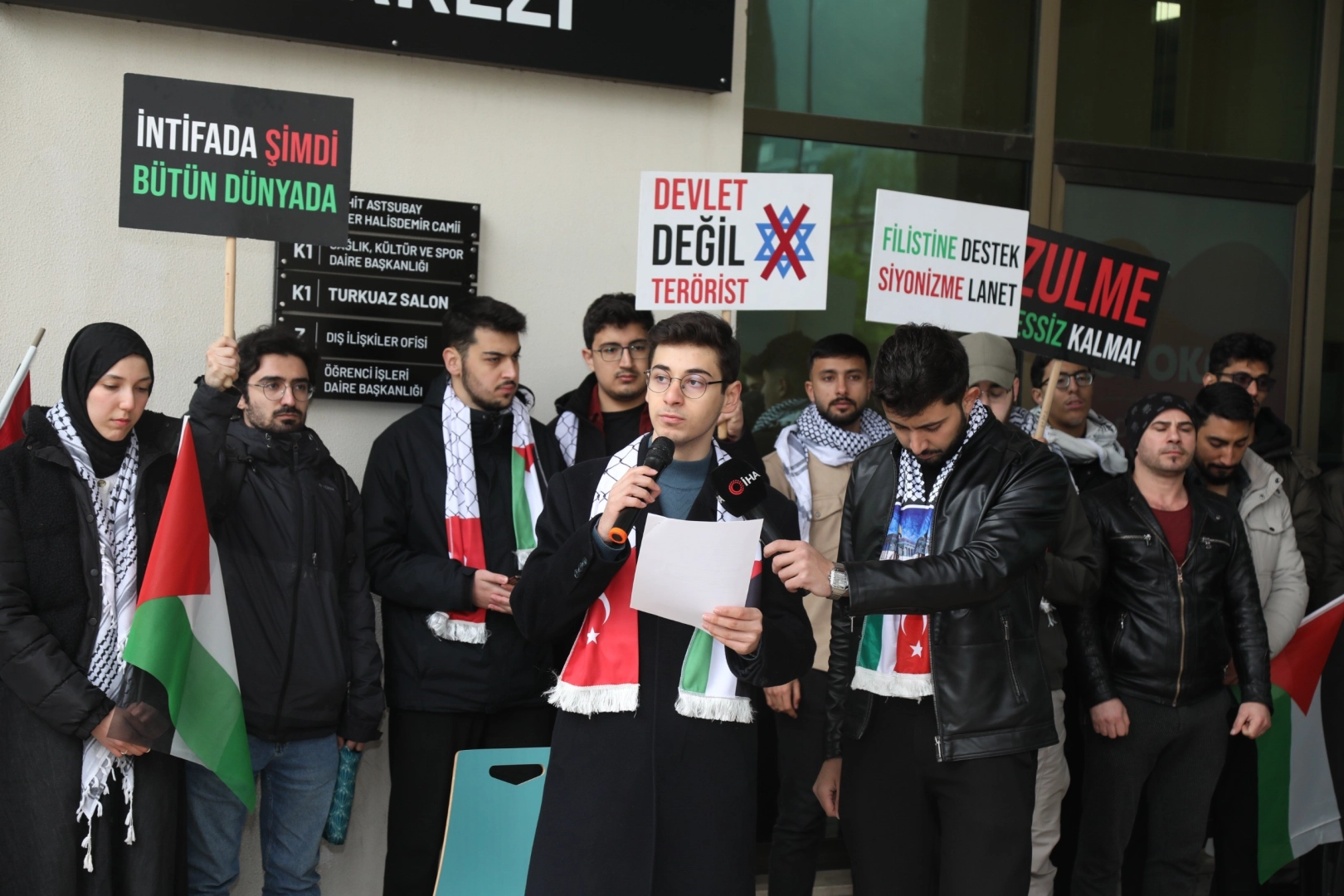 Vicdanlı insanlar olarak elimizden geleni yaptık, eylemlere katıldık, ancak koltuk sahibi insanlar çağrılarımıza kulak vermediler. Biz bir kez daha yüksek sesle haykırıyoruz. Öğrenciler olarak üzerimize düşen vazifeyi yerine getiriyoruz. Devletleri ve uluslararası örgüt ve teşkilatları aksiyon almaya çağırıyoruz. Aksiyon almadıkça, tepki göstermedikçe, bu soykırım engellenmedikçe söylenecek her söz boş laftan ibarettir. Ölüyoruz kardeşlerim, ruhumuz eriyor, yüreklerimiz sökülüyor yerinden. Bebek katillerine karşı elimizden geldiğince mücadeleye devam edeceğiz. Etmek zorundayız. İnsanlar ölüyor, bebekler katlediliyor. Aileler nüfustan siliniyor. Son teknoloji silahlarla saldırılıyor Gazze'ye. Gazze'yi unuttuğumuz her an için yazıklar olsun bizlere! Gazzeli bebeklerin o küçücük bedenlerinin üzerine yağdırılan bombalara bir kuruşumuz dahî giderse yazıklar olsun. Parayı çok seven bu yapıya karşı ekonomik gücümüzü kullanmak, boykota devam etmek zorundayız. İsrail'e maddi olarak, yahut söylemleriyle destek veren hiçbir markadan alışveriş yapmayacağız. Yarın Hakk'ın divanında bizler, üzerine düşeni yapmış, onurlu gençler olarak bulunmak isteriz. Ümitvar olacağız, zalime karşı dimdik duracağız. Çalışacağız, çalışacağız, çalışacağız. Hız ve haz çağında biz gençleri uyuşmuş beyinler, kararmış kalpler haline getirmeye çalışanlara karşı uyanık olacağız. Okuyacağız, kendimizi geliştireceğiz. Çalışacağız. Bu bizim cihadımızdır" ifadelerini kullandı.