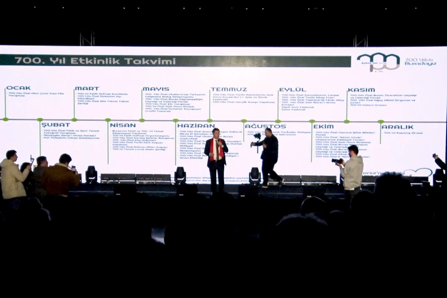 2026 Ocak ayından Aralık ayına kadar etkinliklerin devam edeceğini kaydeden Aydın, "O gün onların Bursa'yı fethederek bıraktığı izler, eserler ve imalathaneler vardır. Bunları korumak ve yaşatmak görevi de bizlere düşmektedir. Normal şartlarda fetih etkinlikleri ve Osman Gazi'yi anma şenlikleri 6 Nisan'da başlayıp bir ay boyunca devam ediyordu. Nisan ayı boyunca da çeşitli etkinlikler yapıyorduk. Bu yıl 8 ay önce ekibimiz çalışmaya başladılar, profesyonel destekler aldılar. 2026'yı Ocak ayından başlayarak 700'üncü yıl olarak Aralık ayına kadar çeşitli etkinliklerle bir yıl boyunca anma ve kutlama yapılacak. Bunların içerisinde birçok etkinliklerimiz olacak. Otuz altı kardeş şehrimizin Bursa'da buluşmasıyla, dünyanın dört bir yanındaki kardeş şehirlerimizle birlikte, etkinliklerden uluslararası tarihi kent koşusuna, rahvan atlarından çeşitli organizasyonlara kadar bir yıl boyunca 700. yılı anacağız" şeklinde konuştu.