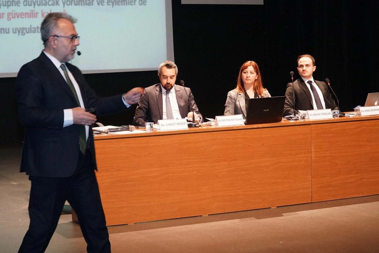 “Cumhuriyet kazanımlarının, laik demokratik hukuk devletinin temelleri aşındırılarak kullanılmaz hale getirilmek istendiği… Demokrasinin temeli olan; demokratik kitle örgütlerinin, sendikaların, meslek örgütlerinin, bilimin, aklın ve adaletin sesi olarak bulundukları beyanlar ve itirazlar sebebiyle yürütme tarafından kriminalize edildiği ve düşmanlaştırıldığı…; Hukuk güvenliğinin kalmadığı, AİHM kararlarının tanınmadığı, Anayasa Mahkemesi kararlarının bağlayıcılığının tartışılmaya açıldığı, hatta mahkemenin kapatılmasının dahi dillendirildiği… Tüm bunları üreten mevcut anayasal sistemin hukuki, sosyal ve ekonomik krize yol açtığı bir ortamda tüm bu sonuçları yaratan sisteme ve kişilere karşı güçlü itiraz koyan Bursa Barosu’nca, seçim kararı alınmasından sonra kurulan seçim hukuku ve güvenliği merkezince, seçimlerde görev almak isteyen avukatlara ilk eğitimlerini vermek ve böylece seçimlerin demokratik, adil, şeffaf, hukuka uygun gerçekleşmesine katkı koymak için bugün burada toplanmış bulunuyoruz.