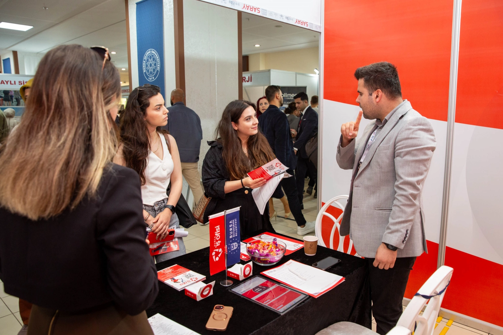 Bursa İş Ofisi kariyer danışmanları, fuar boyunca öğrencilerle birebir görüşmeler yaparak; iş başvuruları, özgeçmiş hazırlama teknikleri, mülakat becerileri, yerel ve ulusal iş fırsatlarına erişim yolları gibi konularda bilgiler sundu. Ayrıca Bursa Büyükşehir Belediyesi tarafından sağlanan istihdam destekleri, kariyer danışmanlık hizmetleri ve gençlere yönelik projeler anlatılarak, öğrencilerin kariyer hedeflerine ulaşmalarına rehberlik edildi.