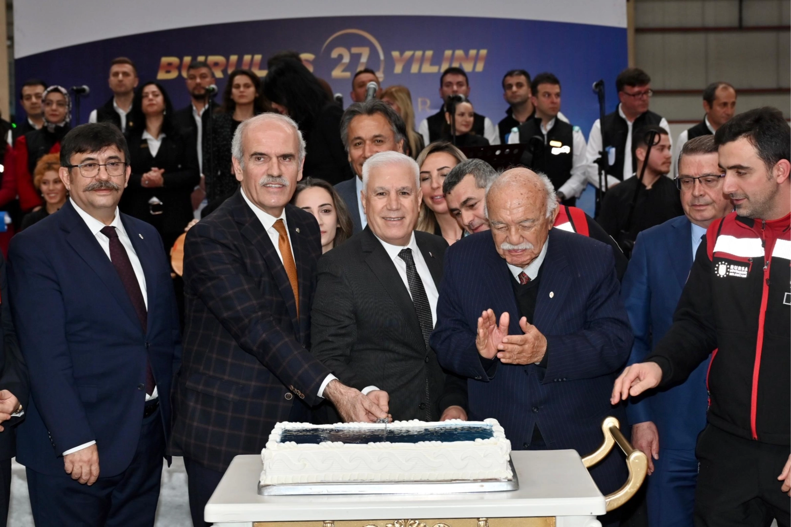 Konuşmaların ardından BURULAŞ çalışanlarının oluşturduğu koro tarafından mini konser verildi. Program, Başkan Mustafa Bozbey ve beraberindekilerin katılımıyla 27. yıl pastasının kesilmesiyle sona erdi.