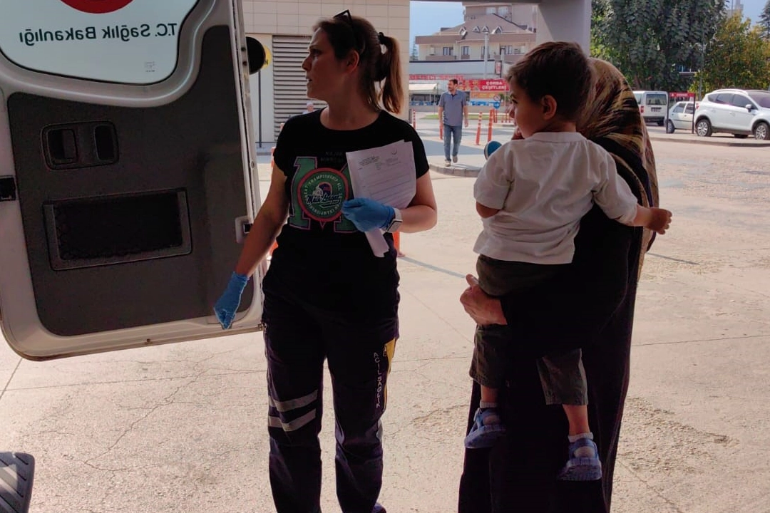 Olayı gören ailesi, küçük çocuğu hemen özel araçla İnegöl Devlet Hastanesi’ne götürdü.
