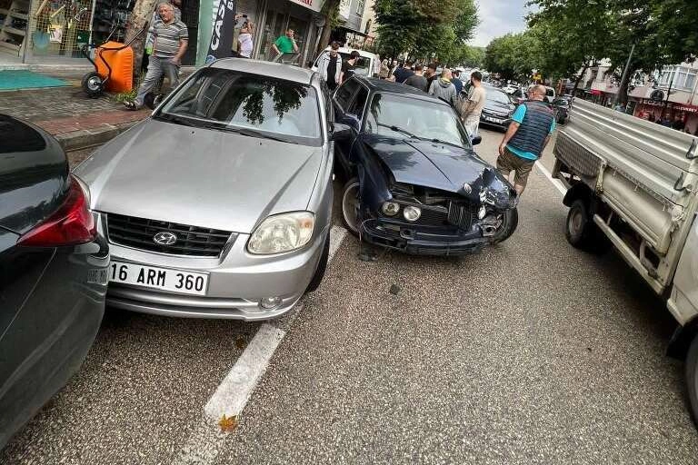 İddiaya göre, 16 AHC 289 plakalı araç sürücüsü, aracının kontrolünü kaybedince kendi etrafında dönüp, cadde üzerinde park halinde bulunan 16 V 7789, 16 ARM 360 ve 16 ANB 529 plakalı araçlara çarptı.