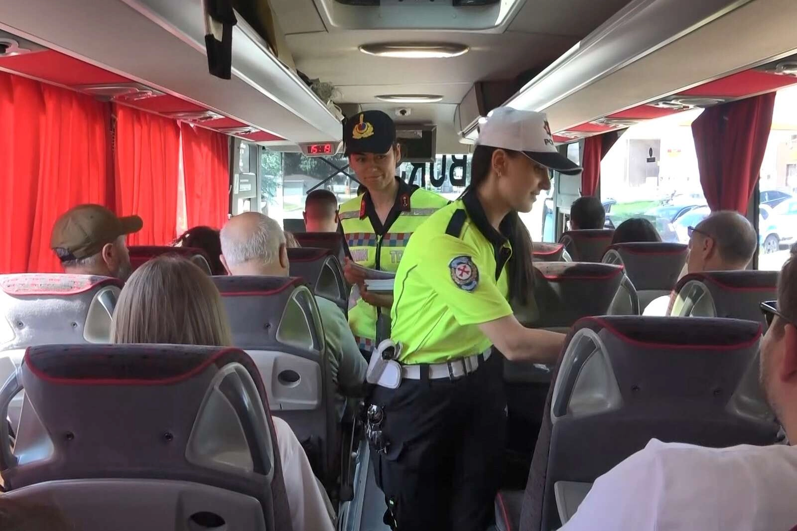 Bursa İl Jandarma Komutanı Tekin Aktemur ve Bursa İl Emniyet Müdürü Tacettin Aslan, 9 günlük bayram tatili için yola çıkan vatandaşları uğurladı. Otobüsün içinde dikkatli olmaları ve emniyet kemeri takmaları konusunda uyarıda bulunan polis ve jandarma ekipleri, aynı zamanda yolculara hediye ve broşür dağıttı. Bayram tatili boyunca 815 polis ile 186 jandarma personeli sahada görev yapacak. Öte yandan, 95 uygulama noktası kurulurken 1 helikopter ve dron ile havadan güvenlik sağlanacak.
