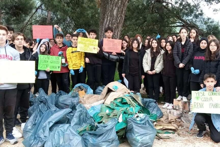 Birçok çöp ve atık malzemeyi doğa bırakıp gidenlerin kirlettiği doğayı, temizleyen gençler topladıkları çuval çuval atık malzemeyi geri dönüşüme kazandırmak için belediye ekiplerine teslim etti. Çevreci öğrenciler hem hocalarından hem de doğaseverlerden tam not aldı.