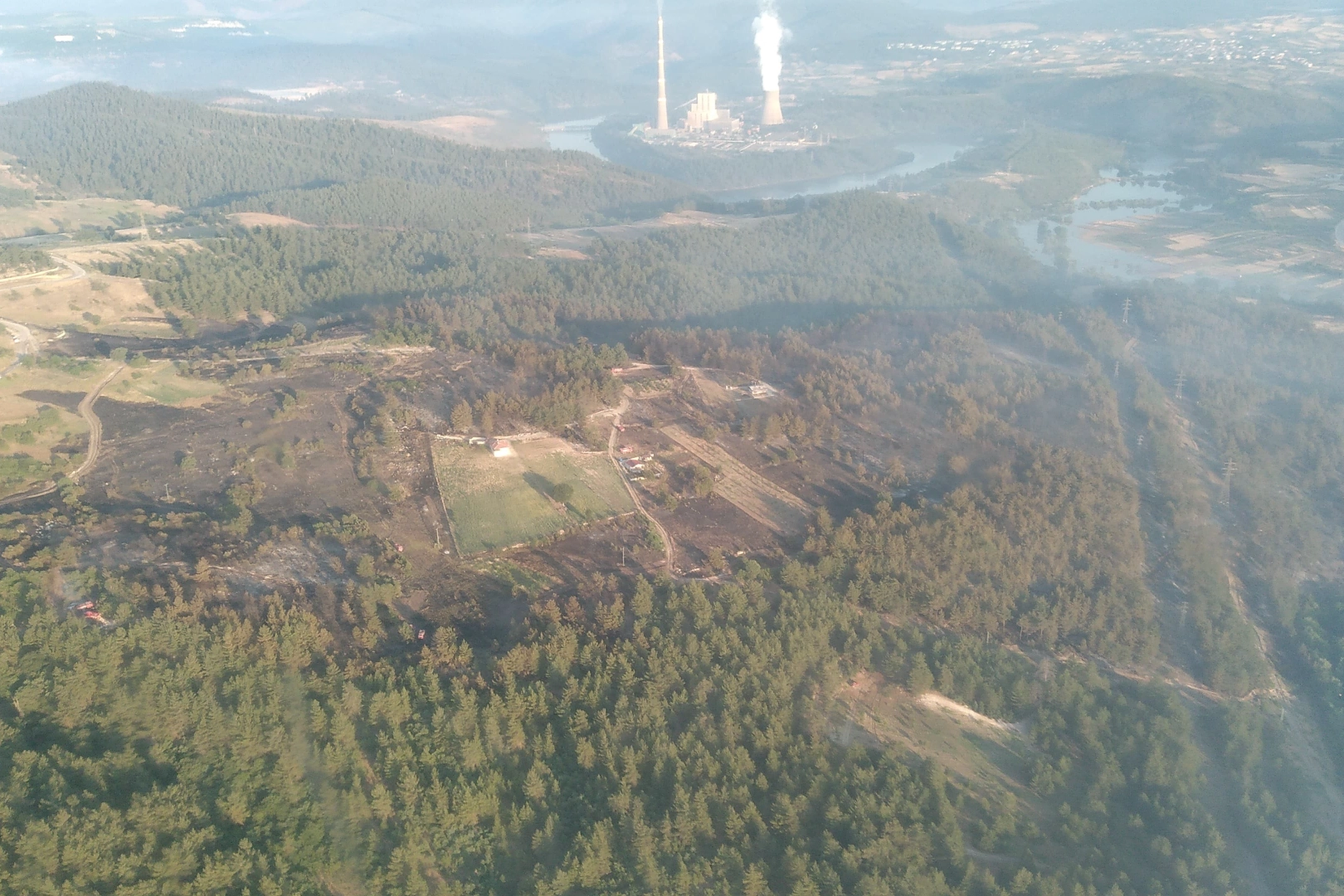 Griye dönen ormanda soğutma çalışması bir süre daha devam edecek. Bursa'nın Orhaneli ilçesinde dün saat 14.37'de Girencik Mahallesi'ne yakın ormanlık alanda çıkan yangın, 24 saat olmadan söndürüldü. Bölgeye hızla sevk edilen Bursa Orman Bölge Müdürlüğü ekipleri, saat 14.45 itibarıyla yangına ilk müdahaleyi gerçekleştirirken, yaklaşık 20 saatlik çalışmada İHA'dan TOMA'lara kadar bir çok ekip seferber oldu. 125 araç, 412 personel, 9 helikopter ve 2 uçağın söndürme çalışmasına katıldığı bölgede, soğutma çalışmaları karadan devam ediyor. Bölgede kontrol amaçlı hava uçuşları gerçekleştirilirken, yetkililer vatandaşları daha dikkatli olmaları konusunda uyardı. Sabahın ilk ışıklarıyla havadan çekilen fotoğraf karesi çam ormanlarının bir kısmının küle döndüğünü gözler önüne serdi.