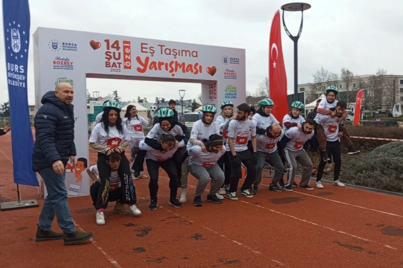 Bursa Büyükşehir Belediyesi'nin hazırladığı, Bursa Millet Bahçesi'nde gerçekleşen eş taşıma yarışması düzenlendi. Birçok çiftin katıldığı yarışmada renkli anlar kameralara yansıdı. Zorlu parkurların olduğu yarışmada eşler kıyasıya rekabet ederken yere düşen çiftler ise pes etmeden yerden kalkarak 1'inci olmak için yarıştı. Eşlerini sırtına alan çiftler kıyasıya rekabet etti.