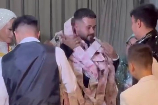 Bursa’da düzenlenen bir düğünde ilginç görüntüler yaşandı. Beyda ve Enes çiftinin mutlu gününde takı merasiminde salona getirilen metrelerce uzayan para şeridi davetlilerin dikkatini çekti. Davetliler arasında şaşkın bakışlar olurken, bazı misafirler telefonlarına sarılarak o anları kayda aldı. 50 metre boyunca uzanan para şeridinin damadın üzerine tek tek dolanması renkli görüntülere sahne oldu.
