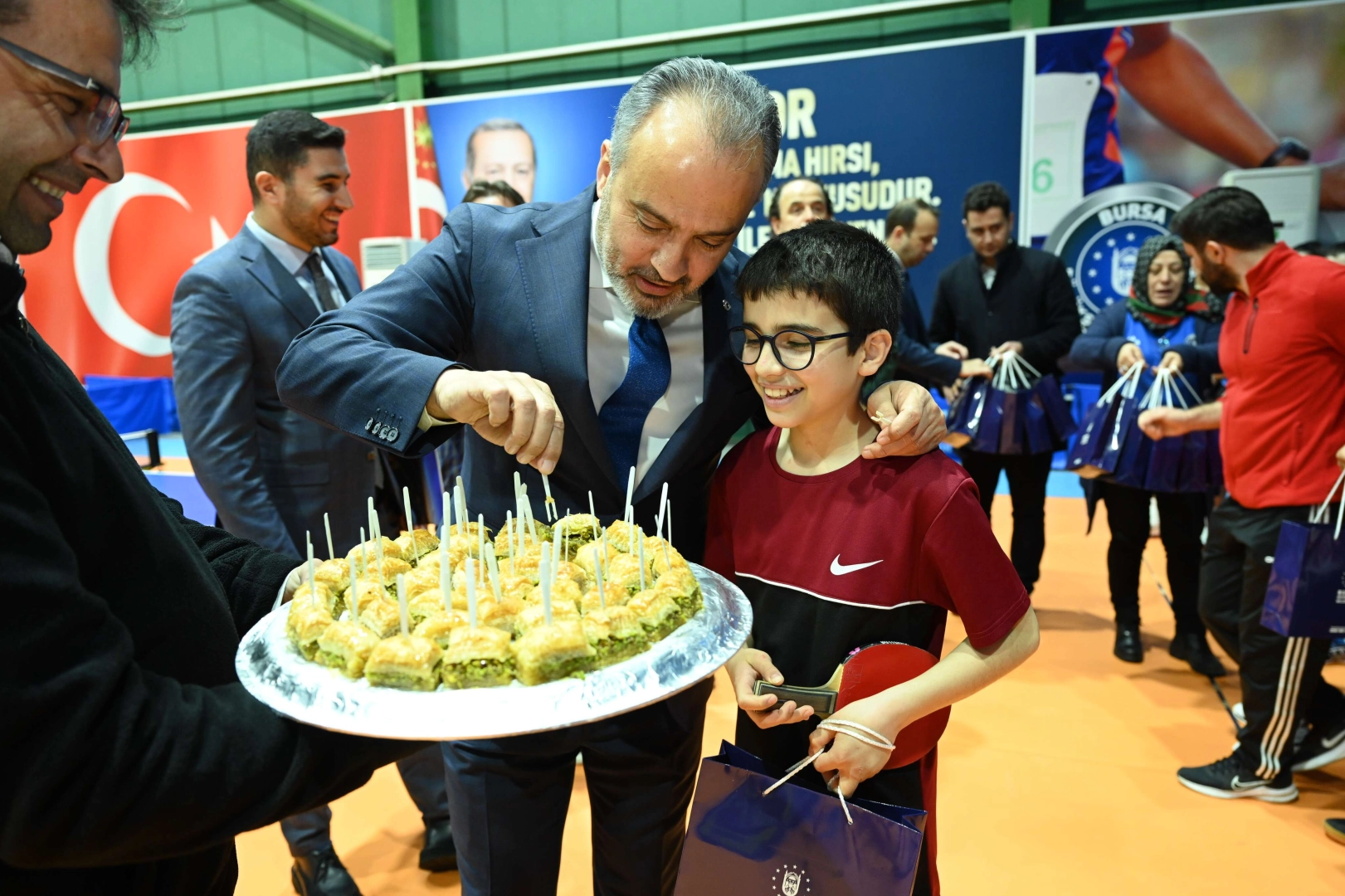 Bursa Büyükşehir Belediye Başkanı Alinur Aktaş da genç sporculara moral vermek için idman saatinde onları ziyaret etti. Sporcularla masa tenisi oynayıp, onlara baklava ikram eden Başkan Aktaş, “Acımız çok büyük ama bir taraftan da yaraları sarmaya çalışıyoruz. Depremzede kardeşlerimize sahip çıkma noktasında elimizden gelen gayreti ortaya koyuyoruz. Deprem bölgesindeki 5 ilden gelen 5 antrenör ve 20 lisanslı sporcumuzu Bursa’da misafir ediyoruz. Bizim sporcularımızla beraber onları diri tutmaya, acılarını biraz olsun hafifletmeye çalışıyoruz. Çocuklarımızın mutluluğunu ve heyecanını görmek beni mutlu etti. Onların acılarını dindirmek, moral vermek, yaralarını sarmak bizim en önemli görevimiz” dedi.