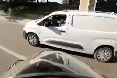 Tepkilere küfürle karşılık veren araç sürücüsü "pes" dedirtirken, o anlar kask kamerasıyla kaydedildi.