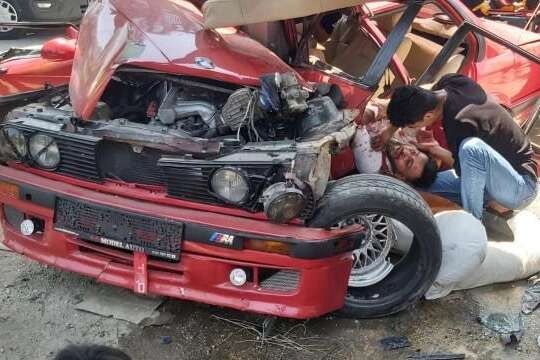 Bir üst geçidin alt direklerine vurarak durabilen otomobil çarpmanın etkisiyle ikiye bölündü. Çevredekilerin ihbarı üzerine gelen itfaiye ekipleri sürücü Ersin Ö. ve yanındaki arkadaşı Mursel İ.’yi sıkıştıkları araçtan çıkartıp sağlık ekiplerine teslim etti.