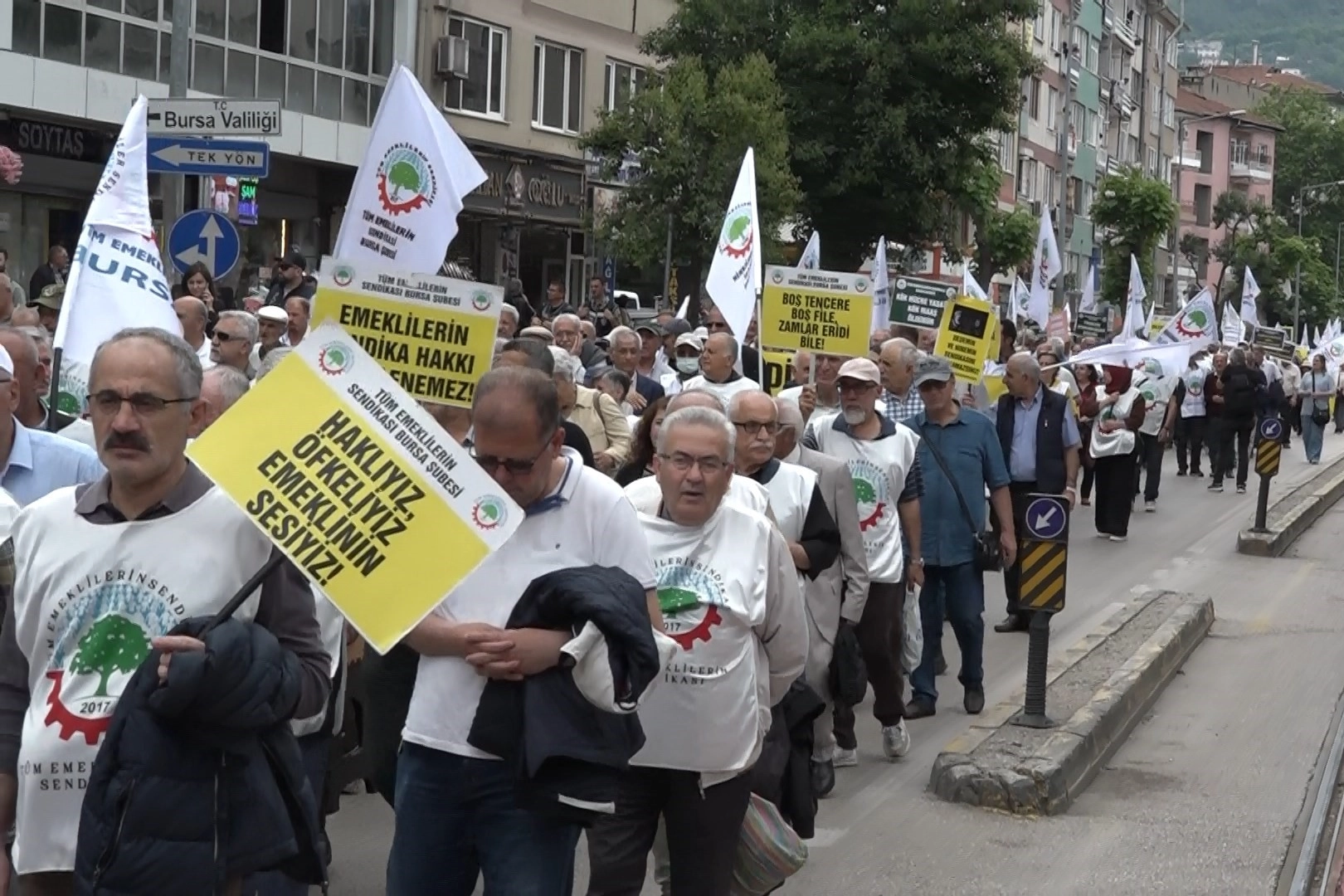 Atatürk Stadyumu önünde toplanan emekliler, Darmstad Caddesi üzerinden yürüyerek kent meydanında toplandı. Emekliler adına konuşan Tüm Emeklilerin Sendikası Başkanı Ensar Torun, "Ülke ekonomisi her yıl belli ölçekte doğal olarak büyüyor. Peki bu büyümeden, yani refah payından emekliler, çalışanlar neden yararlandırılmıyor? Emekliler hem ekonomik mücadelelerini sürdürecekler, hem de bu ülkenin olması gereken laik, demokratik, insan haklarını saygılı ve sosyal bir hukuk devlet olması için mücadele edeceklerdir” diye konuştu.
