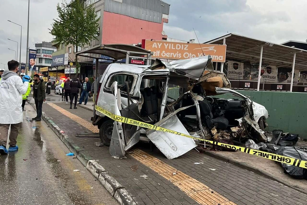 Bursa’da yağışlı havanın etkisiyle sürücüsünün kontrolünden çıkan hafif ticari araç önce bir iş yerinin demir kapısına, ardından önündeki otomobile çarptı. Çarpışmanın etkisiyle ikiye bölünen araçtaki 2 kişi hayatını kaybederken, 1 kişi de yaralandı.