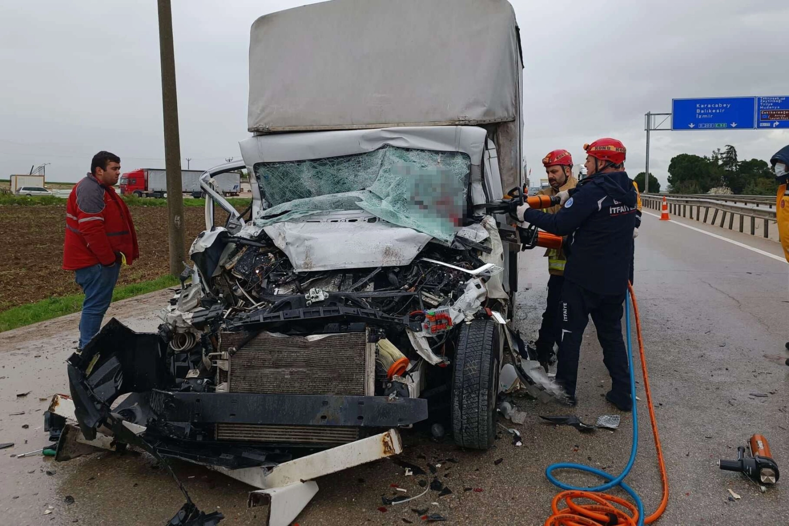 Kaza, Bursa-İzmir karayolu üzeri Karacabey ilçesi yakınlarında meydana geldi. Edinilen bilgiye göre, Karacabey’in Yenikaraağaç Mahallesi kavşağı yakınlarında İzmir yönünden Bursa istikametine seyreden Sedat K.’nin idaresindeki 16 HEV 09 plakalı TIR'a yine aynı istikamete seyreden Ahmet Y. yönetimindeki 16 AOB 729 plakalı kamyonet arkadan çarptı. Kazada araçta sıkışan kamyonet sürücüsü Ahmet Y., Karacabey itfaiye ekipleri tarafından sıkıştığı yerden çıkarıldı.