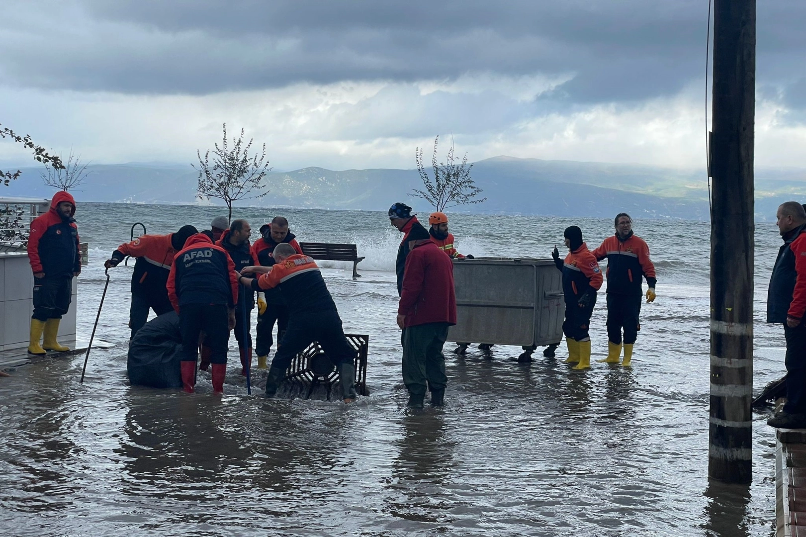Jandarma Kurşunlu sahil yolunu trafiğe kapattı. AFAD, BUSKİ, MAK ve Gemlik Belediyesi ekipleri rögar kapaklarını açarak yolda biriken deniz ve sel sularını kanalizasyona gitmesini sağladı. Açılan rögar kapaklarını sürücülerin fark etmesi için çöp tenekeleri ile tedbir alındı. Gemlik’in bazı sokakları ve Kurşunlu’da su basan evleri BUSKİ ve Gemlik Belediyesi ekipleri tahliye etti. Yağmurdan kaynaklı denizin de kahverengi bir hal aldığı ve dev dalgaların oluştuğu görüldü.