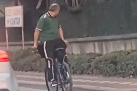 Bursa’da bir vatandaş, trafiğin aktığı caddede bisikletine ters binerek ilerledi. O anları gören sürücüler kısa süreli şok geçirse de cep telefonu kameraları ile kaydetti.