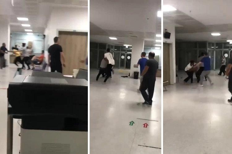 Tekme ve yumrukların havada uçuştuğu kavgayı güvenlik görevlileri güçlükle ayırırken, darp sonucu yaralanan kişiler başka bir hastaneye sevk edildi.