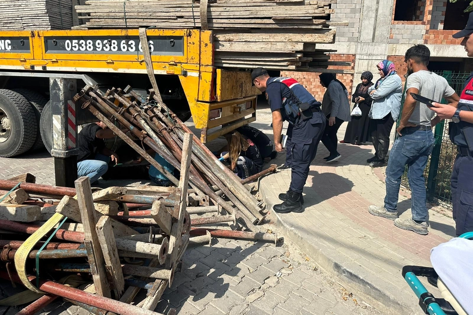 Edinilen bilgiye göre, kamyon üzerindeki inşaat malzemelerini vincin halatına bağlayan Osman Ç. (62), kendisi de malzemelerin üzerine tutunarak oturdu. Halatın bir anda kopması sonucu kafa üstü beton zemin üzerine düşen işçi ağır yaralandı.
