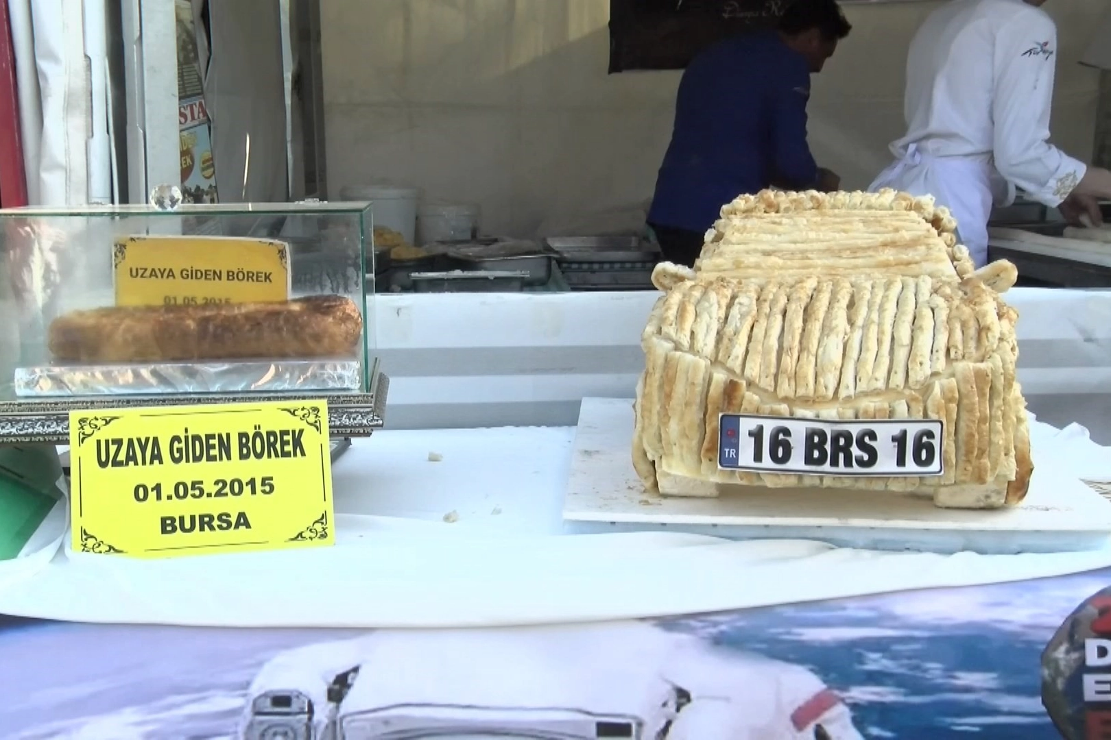“ÇEKİLİŞTEN TOGG ÇIKTI, BEN DE BÖREKTEN TOGG YAPTIM” Börekten yaptığı Togg’u gören ziyaretçilerin gözlerini alamadığını belirten Börek Ustası Hasan Acar, “2. Bursa Gastronomi Festivali beklentimizin üzerinde bir katılımla başladı. Biz börekten her şeyi yapıyoruz. Dünyanın en büyük böreğini de yaptık, uzaya börek de gönderdik. Togg milli aracımız, bana da Togg çıktı. Bunun üzerine börekten Togg yaptım. Börekçi, olduğum için börekten yaptım, pastacı olsam pastadan yapardım. Herkesin dikkatini çekiyor” dedi.
