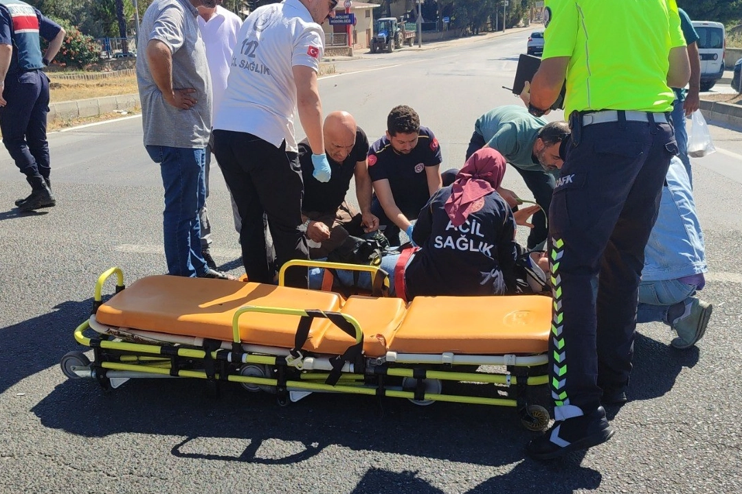 Çarpmanın şiddeti ile savrulan motosikletin sürücüsü Leyla Ulutaş yaralandı.