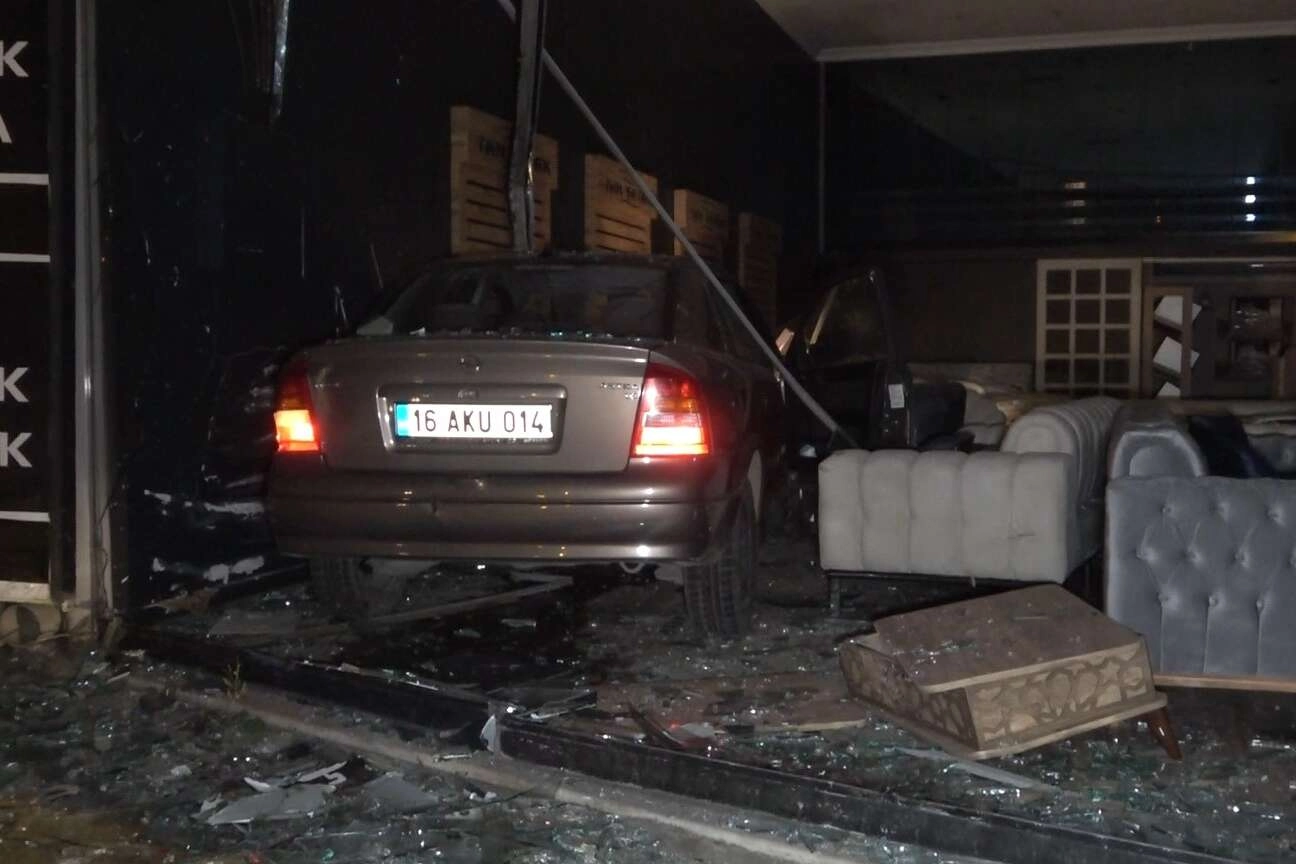 Mudanya Bulvarı üzerinde seyir halinde olan Nevzat M. idaresindeki 16 AKU 014 plakalı otomobil lastiğinin patlaması sonucu sürücüsünün kontrolünden çıkarak mobilya dükkanına girdi.
