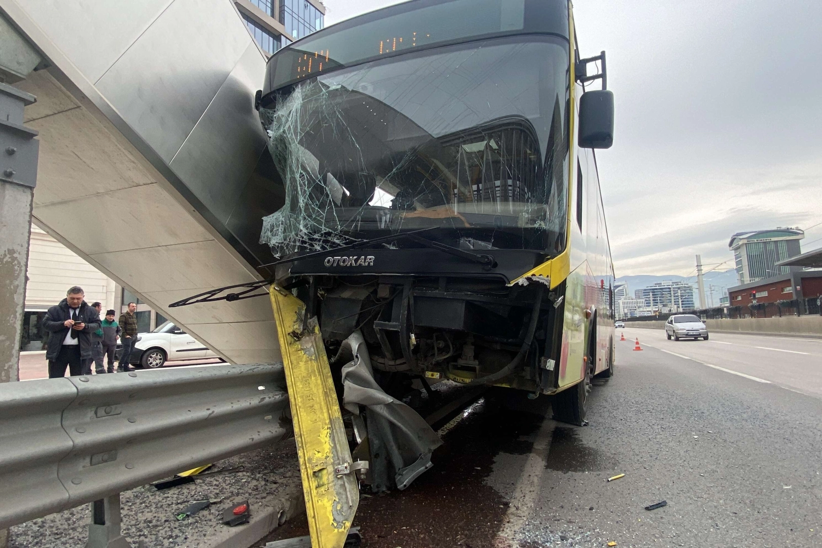 Görüntülerde otobüsün bir anda bariyerlere doğru giderek çarptığı görülüyor.
