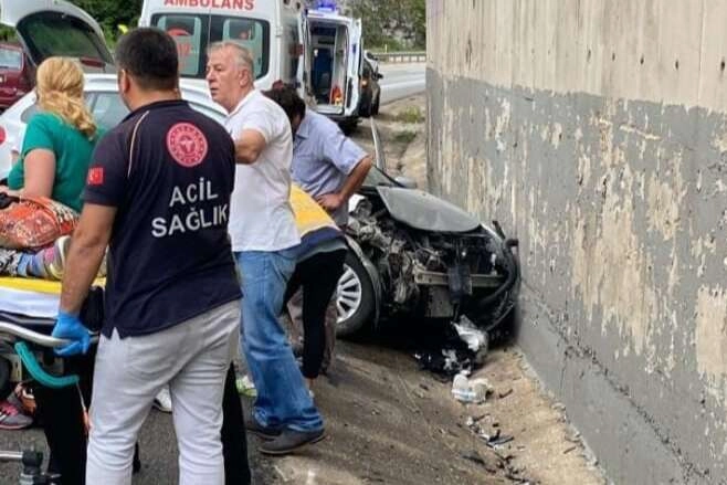 Ankara istikametinden Bursa'ya seyir halinde olan sürücü Emre Yılmaz(40) yönetimindeki 35 AV 7949 plakalı otomobil, yağış nedeniyle kayganlaşan yolda sürücüsünün kontrolünden çıkarak istinat duvarına çarptı.
