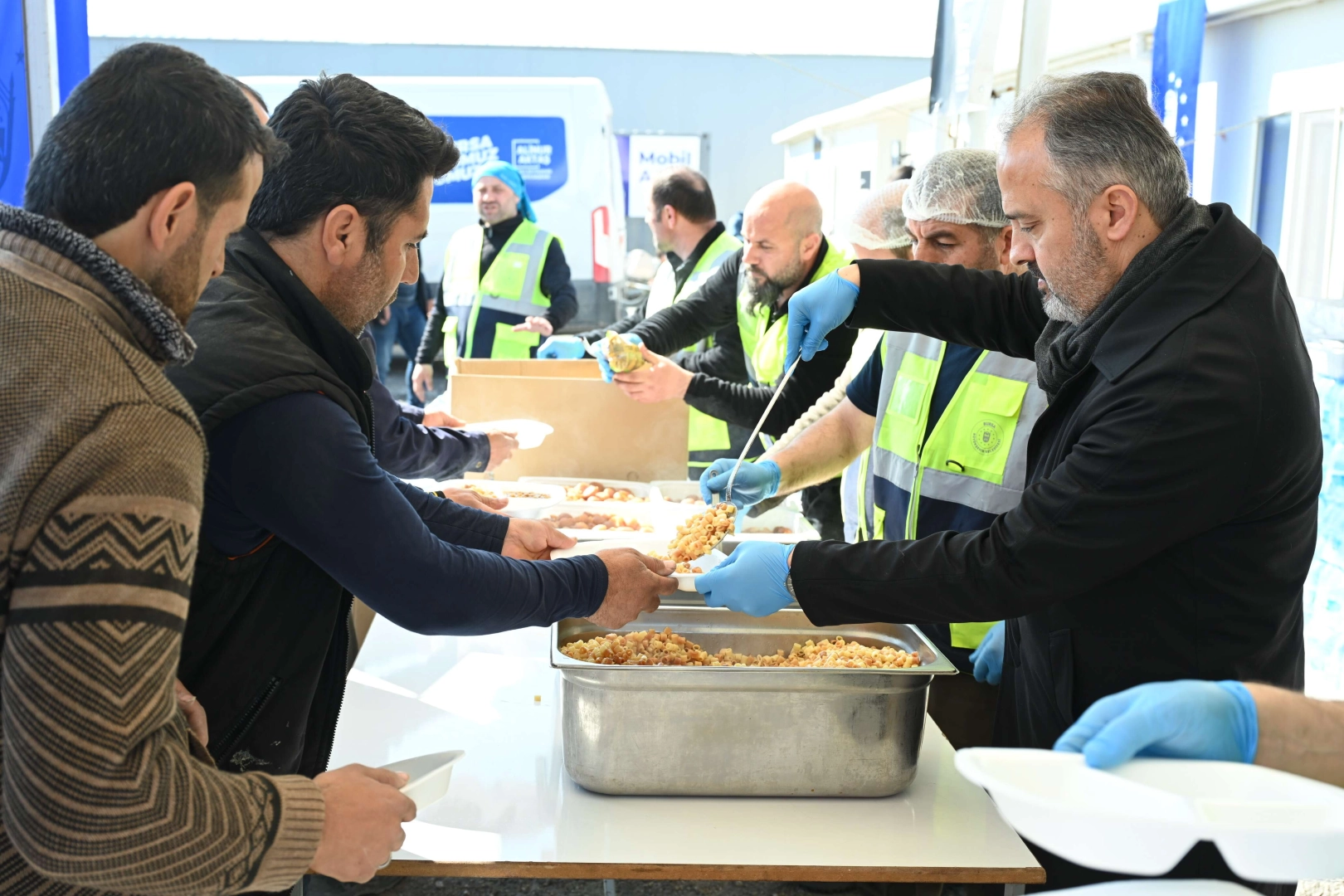 Asrın felaketinde büyük yıkıma uğrayan Hatay’da, yardımların dağıtımı, geçici yaşam alanları oluşturulması ve seyyar tuvaletlerin kurulumuyla görevlendirilen Bursa Büyükşehir Belediyesi, Ramazan bereketini Hatay’da da yaşatacak. Türkiye genelinden gelen yardımları her gün düzenli olarak Hatay’da afetzedelere ulaştıran Bursa Büyükşehir Belediyesi, her gün 3 ayrı noktada toplam 2 bin kişiye iftar ve sahur verecek. Bunun yanında Büyükşehir Belediyesi’nin koordinasyonunda, bölgedeki diğer belediyelerin de destekleriyle Hatay’da 20 bin erzak kolisi dağıtılırken, bunun 10 bin kolisi Bursa Büyükşehir tarafından karşılanacak.